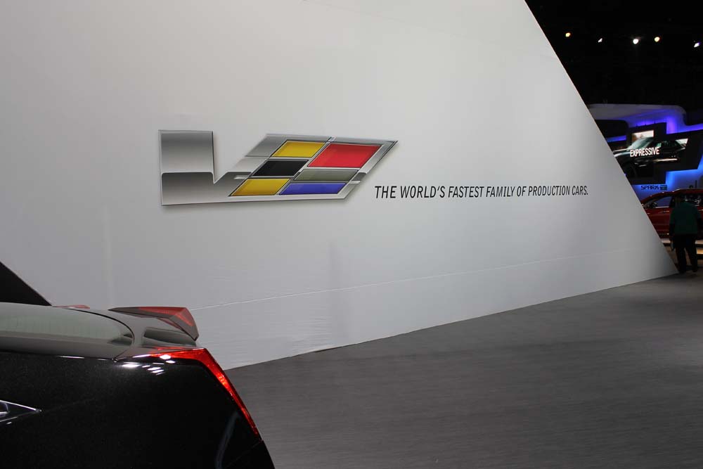 In the Cadillac section, “The World’s Fastest Family of Production Cars” was emblazoned across the wall. Caddy has come roaring back into the luxury fight in recent years, and I simply love the lines of the new cars. Also, check out the “Black Diamond Tri-Coat” paint on the CTS V Coupe. How slick is that? It’s a $900 option, but damn, it’s devastating. And you can even get it on the wagon—I made sure.