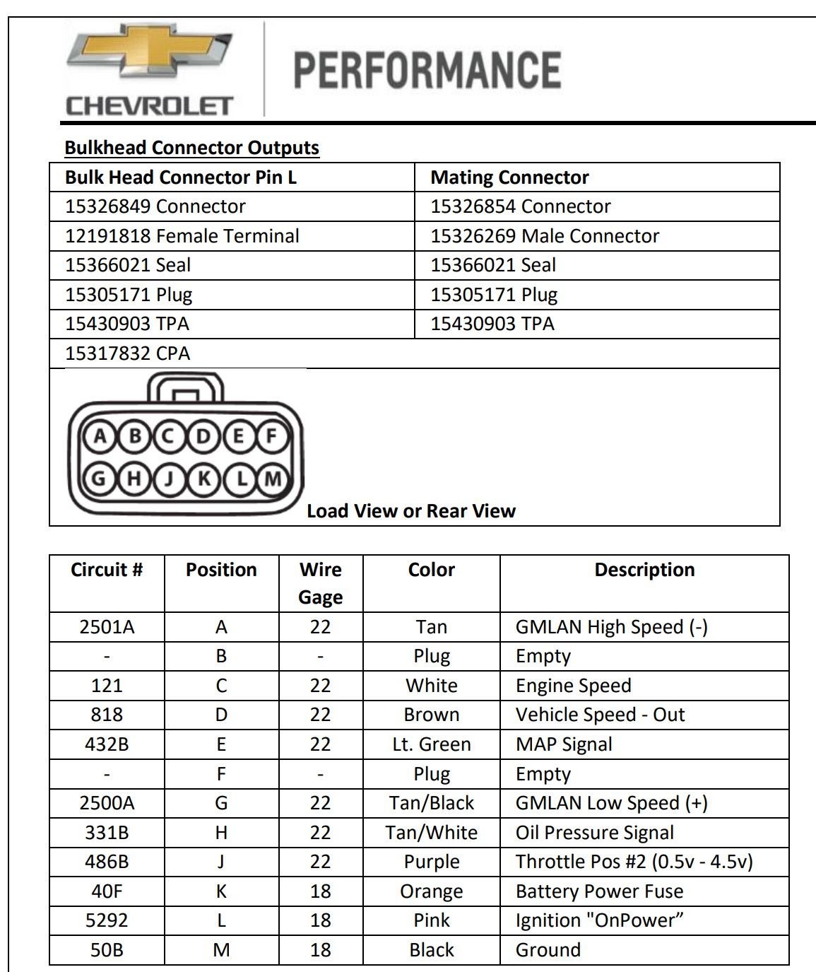 It is the White engine speed wire (circuit # 121) This wire is provided in the GM Ls3 controller kit for tachometers. attached is the wire connector description and signal description from the controller manual.