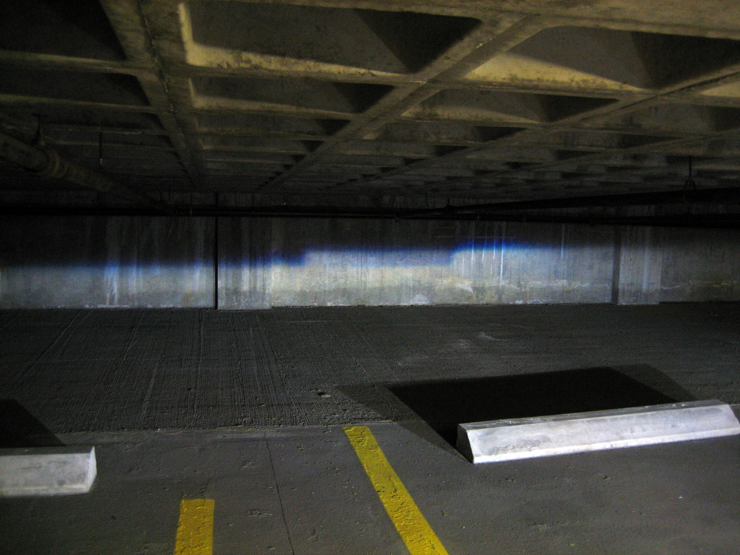 (The ceiling was about 6" taller than my car where I parked it and a fair bit shorter at the front where the lights are aimed.)