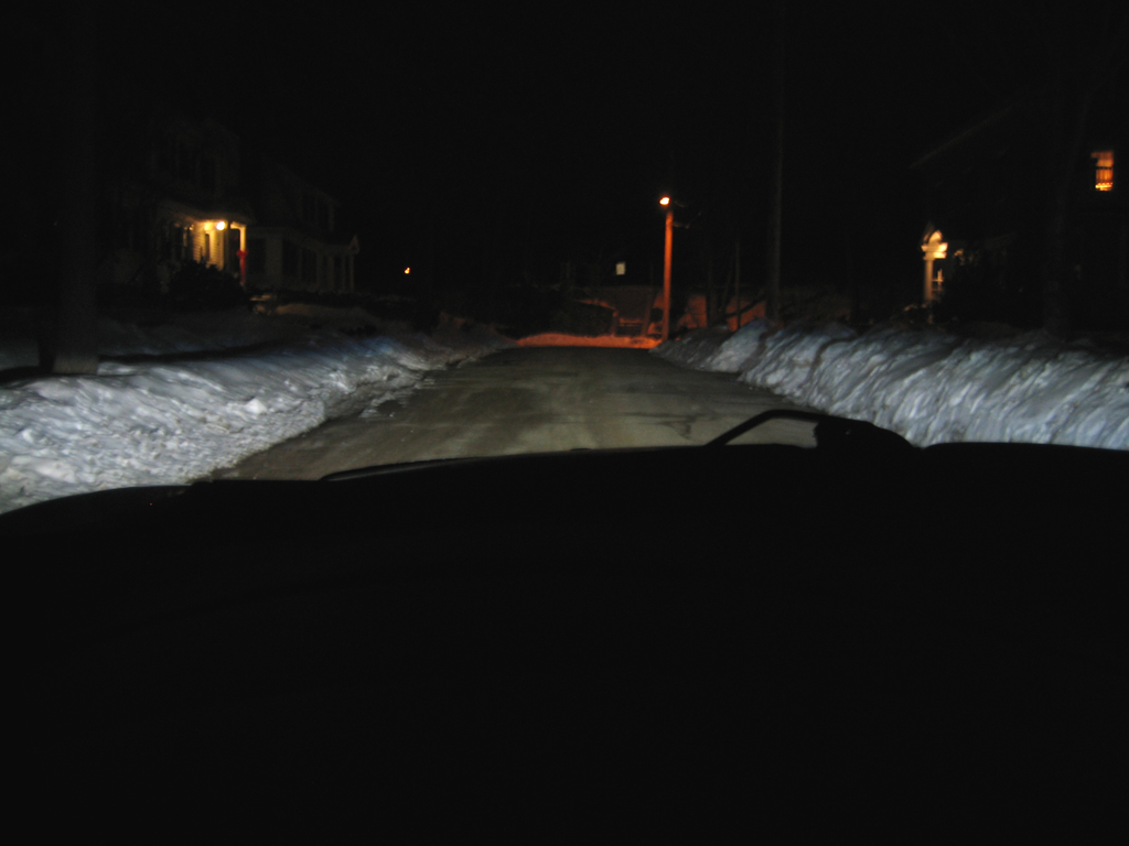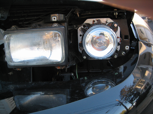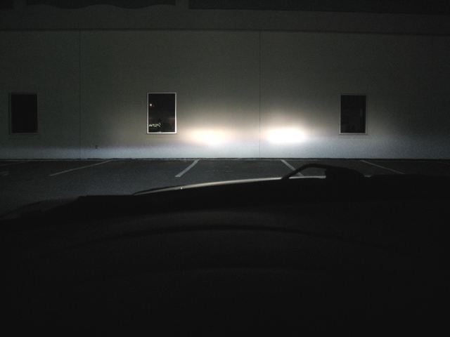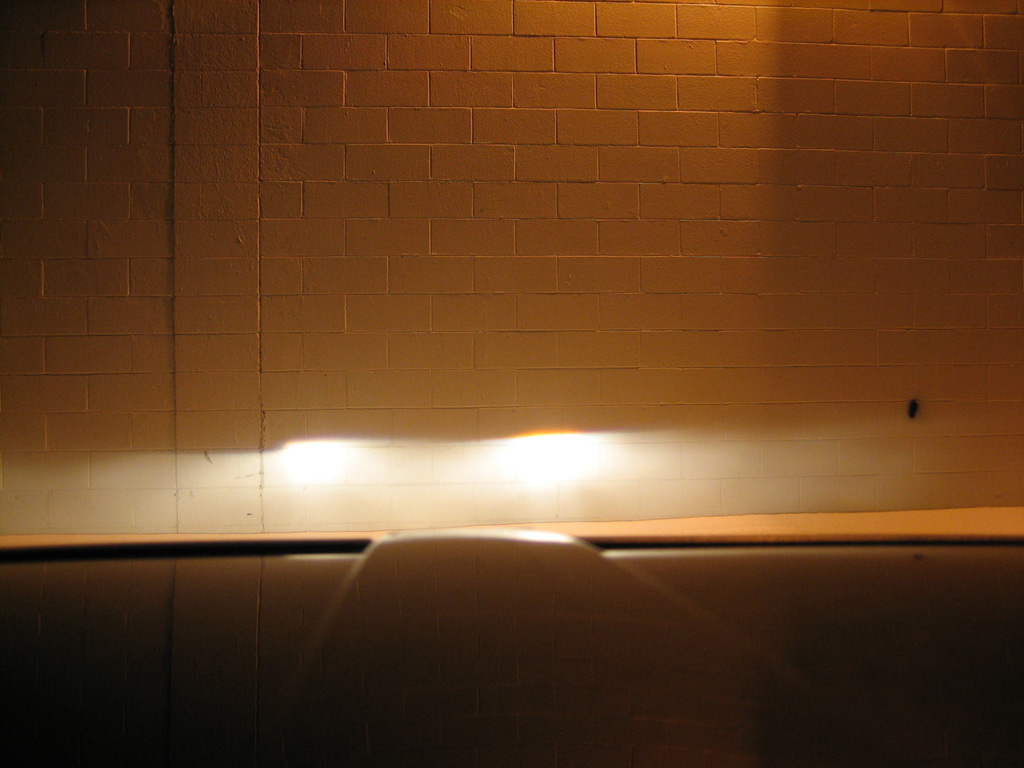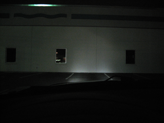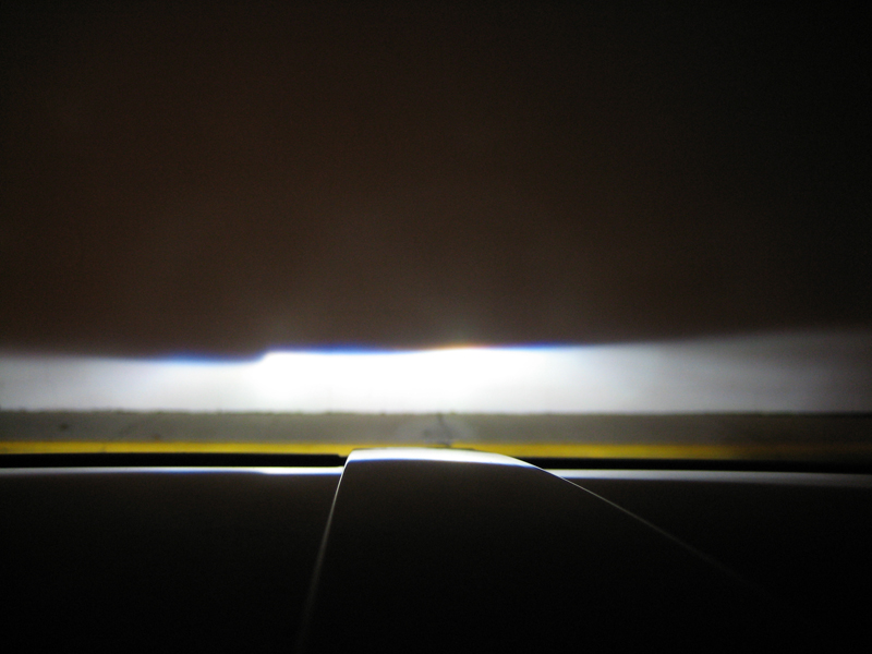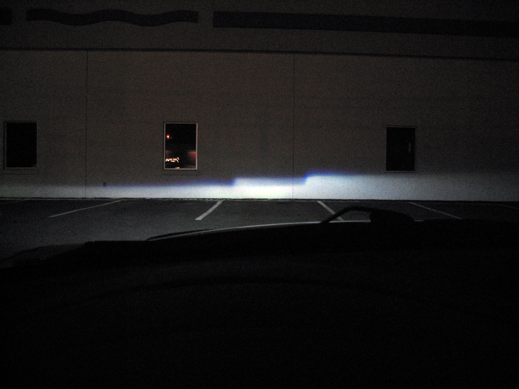 This picture didn't come out that well and doesn't show how good the output was. The passenger-side can be made sharper (I could have sworn I had it sharper than that before I installed it on the car). I'll have to disassemble it again to adjust.