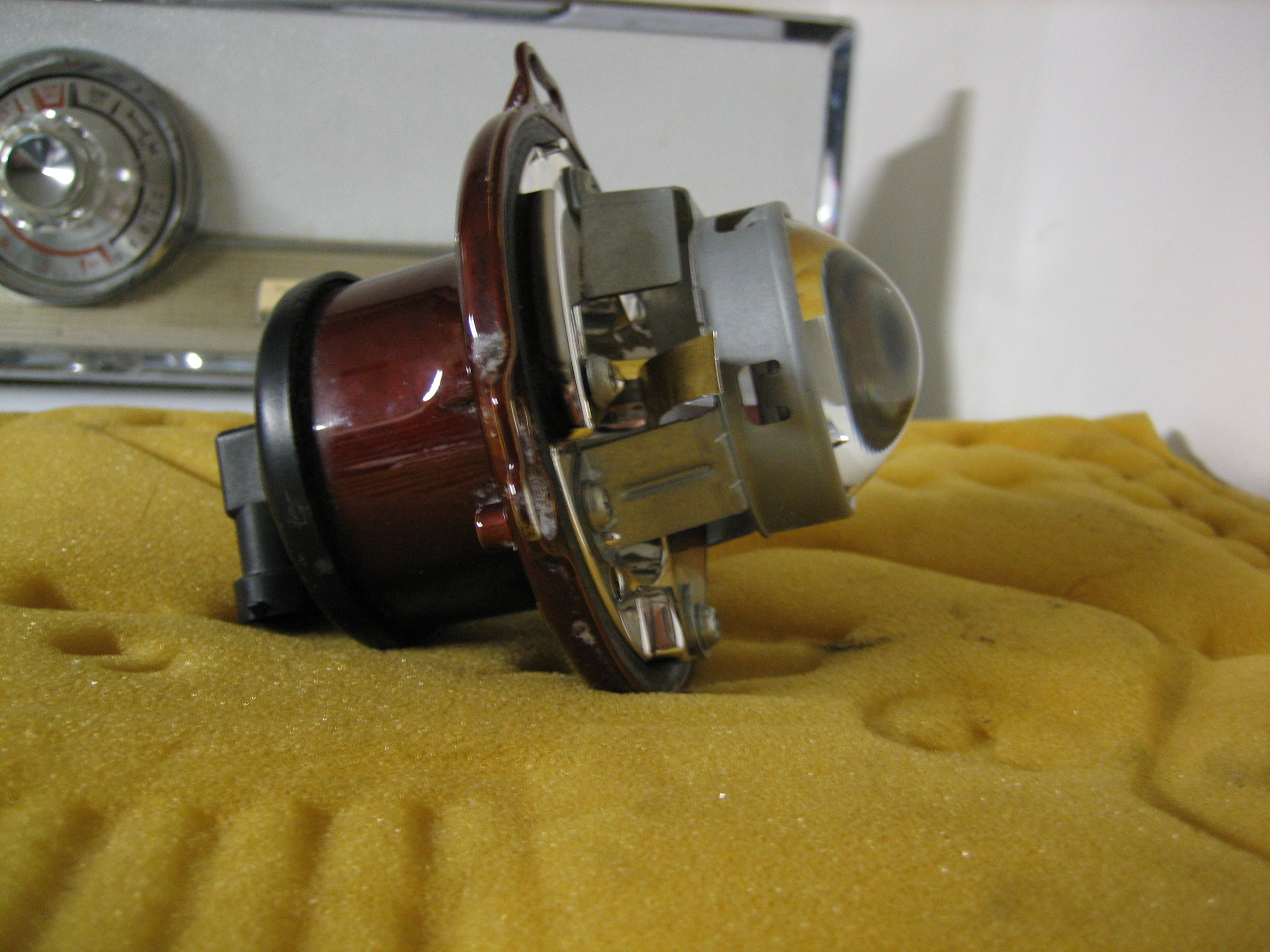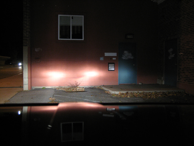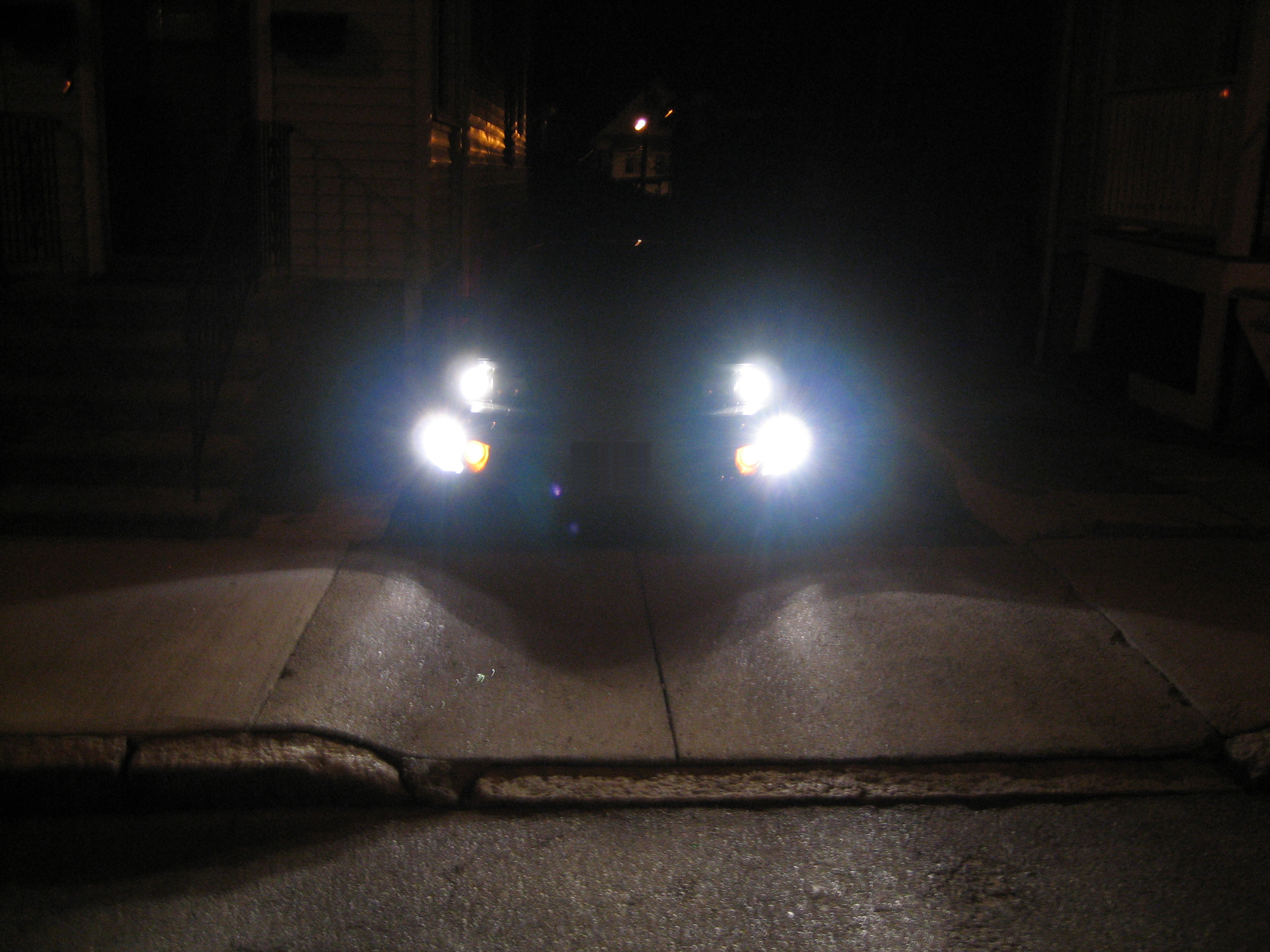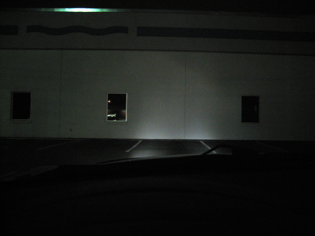 This picture didn't come out that well and doesn't show how good the output was. The passenger-side can be made sharper (I could have sworn I had it sharper than that before I installed it on the car). I'll have to disassemble it again to adjust.
