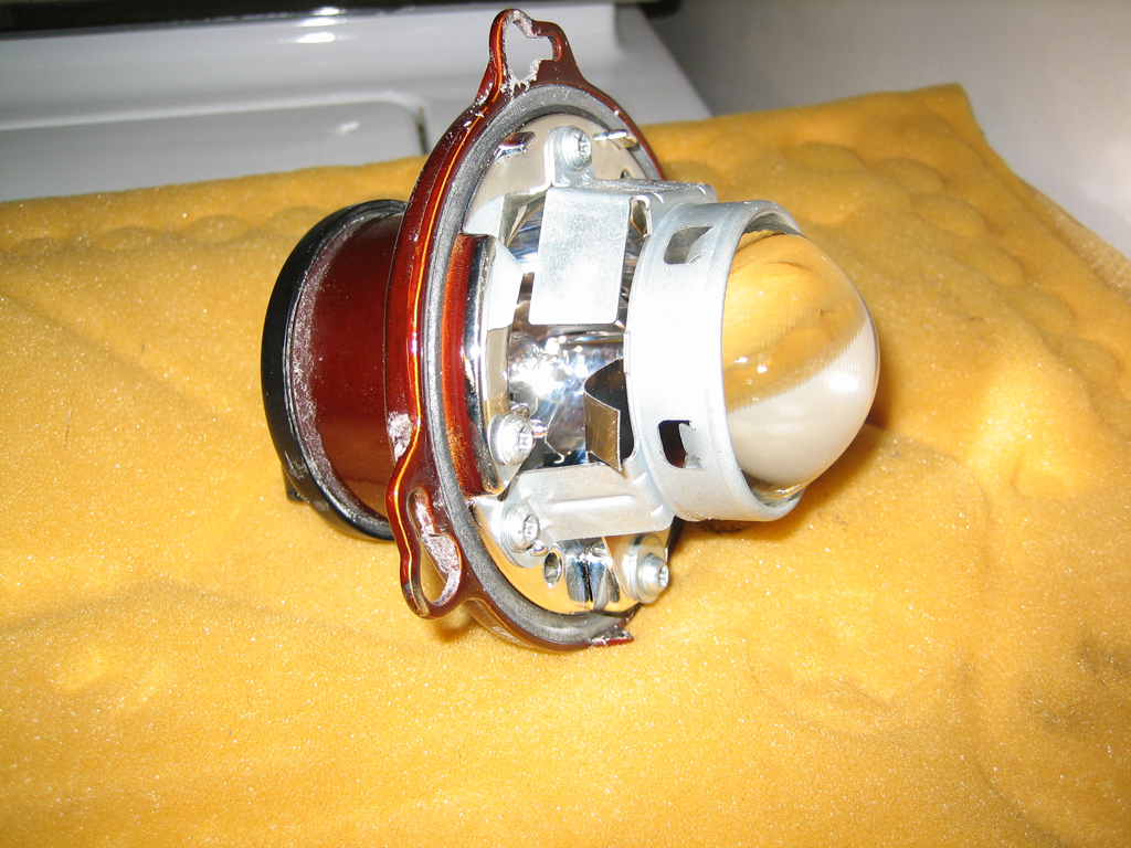 The shield was an unpainted aluminum when it was installed. Somehow it painted itself to match the projector housing.... odd. Its not melted or damaged. I think the halogen bulb caused the projector body to heat up and the paint to out-gas and redistribute onto the shield. Its a far fetched theory, but that's what it looks like. Its a fairly uniform curve with the edges curved more than the middle. The curve is shallower in the middle. It's not an exact science. There was plenty of trial-and-error involved. The pics above were taken with the 4300K HID kit re-installed. I am also considering high-temp chrome paint for the side of the shield that faces the bulb. It might improve output and protect the shield.