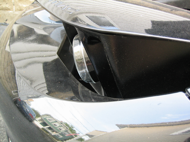 As noted in the First Post, links to older threads on other sites are broken now and info lost. I'm updating this with what was cut to fit the Hella 90mm projectors I had in there when this thread was created (I have Sinolyn Projectors now and that is what you see in the cut pic below). I just took a couple pics on the car as they appear now.