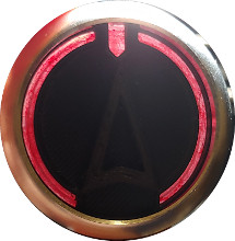 The final version I went with is a thin clear disk with a beveled arrow. I painted the arrow red, left the center clear, and painted around in black.