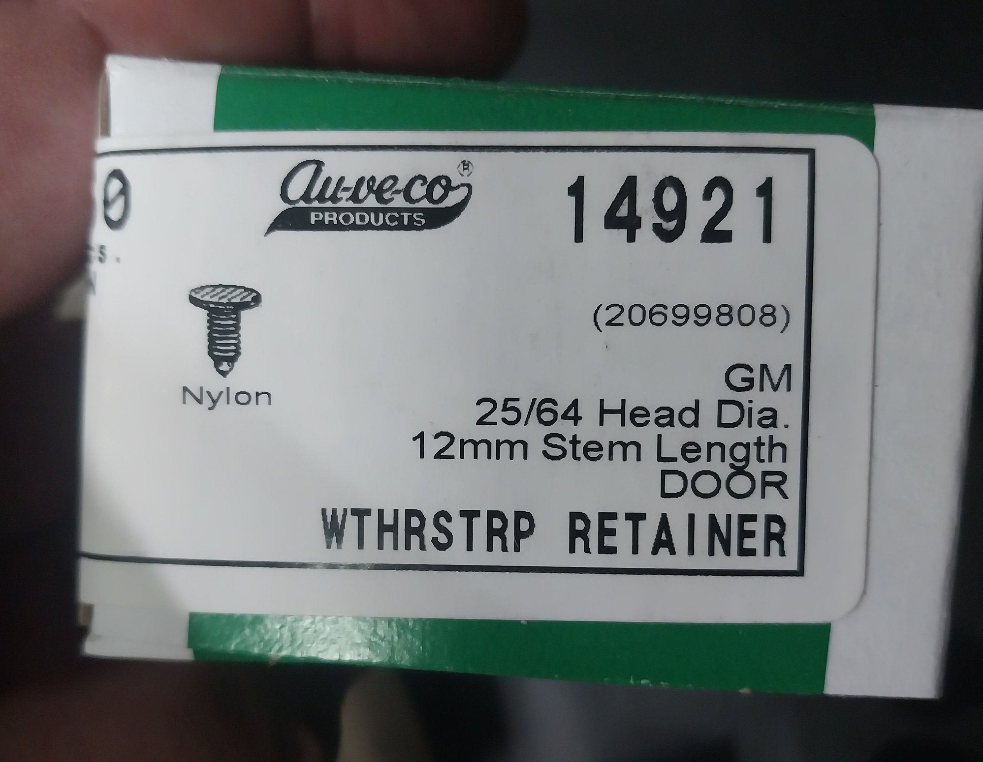 Just so happened that the xmas trees holding the rubber molding end piece on my door were missing ....then found the reason why they were missing is because the xmas trees are to SMALL for the hole in the door