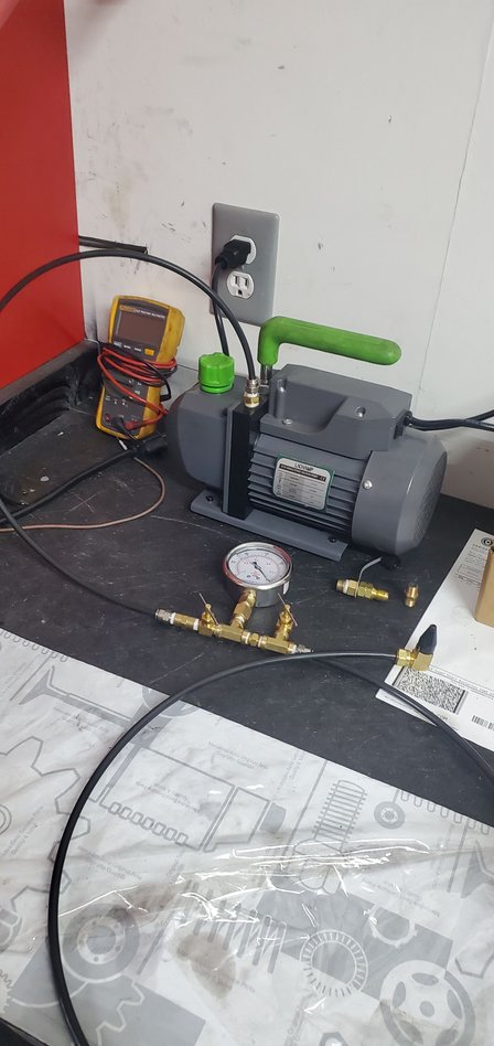 vacuum pump obviously. I picked mine up on amazon for 48 bucks. had decent reviews. has worked great so far...just eats a little more oil than a top dollar one