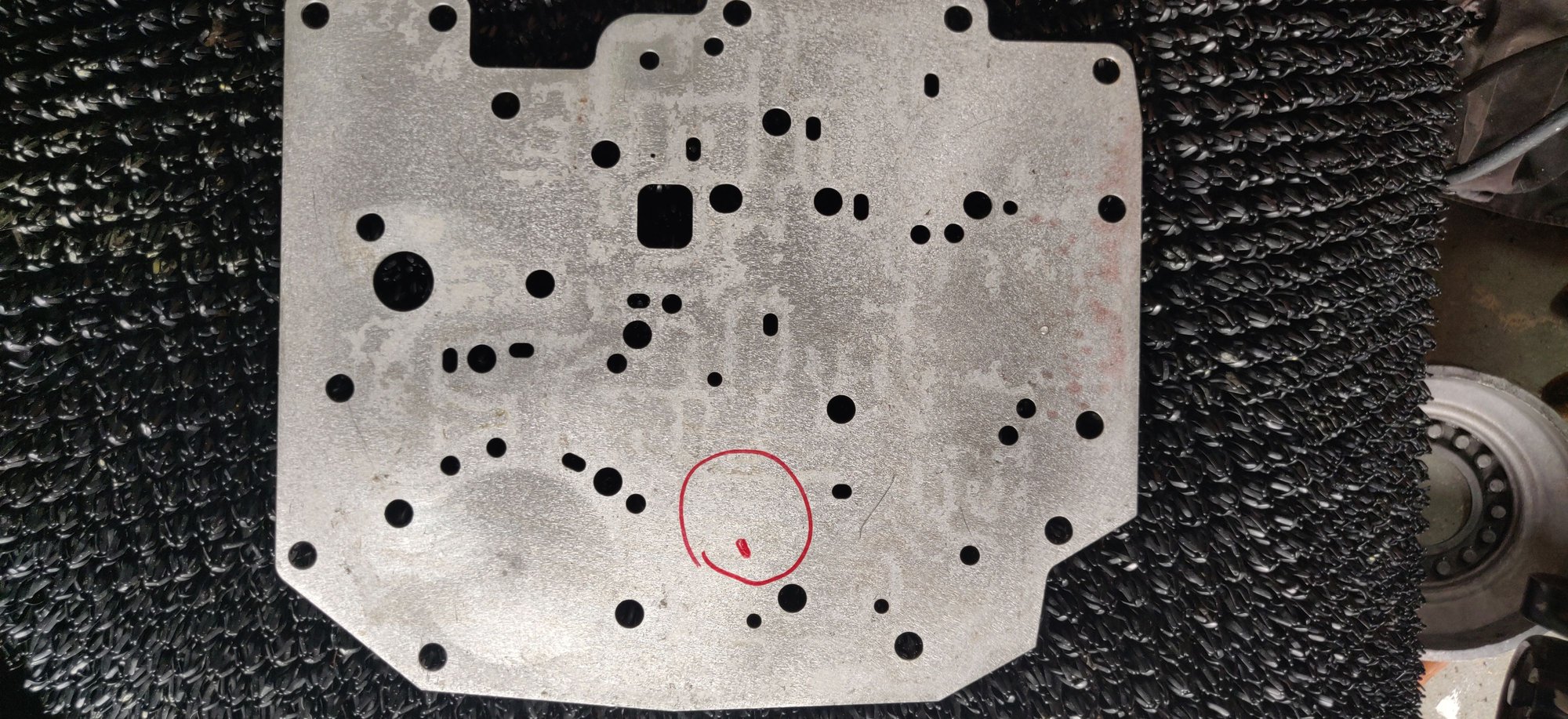 Also the intermediate accumulator bore is blocked with a 2 1/4 freeze plug - not sure if the circuit flows thru that bore to the 1 2 accumulator requiring the freeze plug removed and pipe plug the center bore??