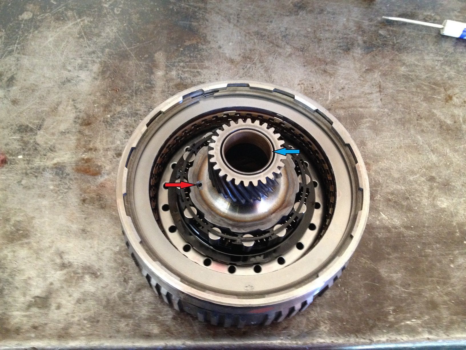 The Lube-Oil passage can be seen on the OverRun Clutch-Drum in the image below: