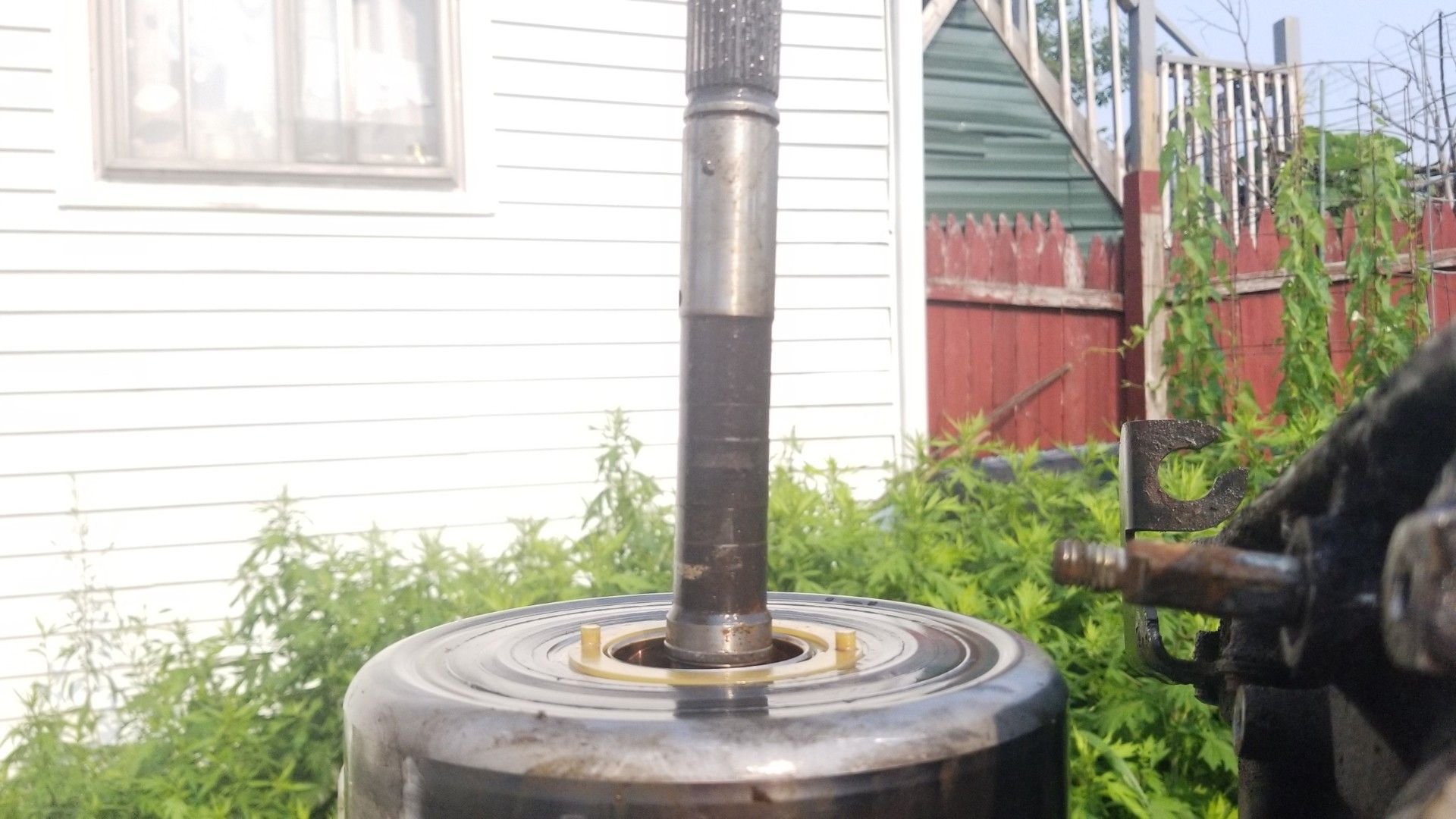 Then there is the actual ISS shaft. This one is from a GM reman unit that was in a 2007 Trailblazer SS and was tagged 7KCD had a pump and input shaft stamped 06, the case had the etched code of 0CAD. It doesn't have a groove in it, but it does have a step down on the diameter that matches the groove depth of the others