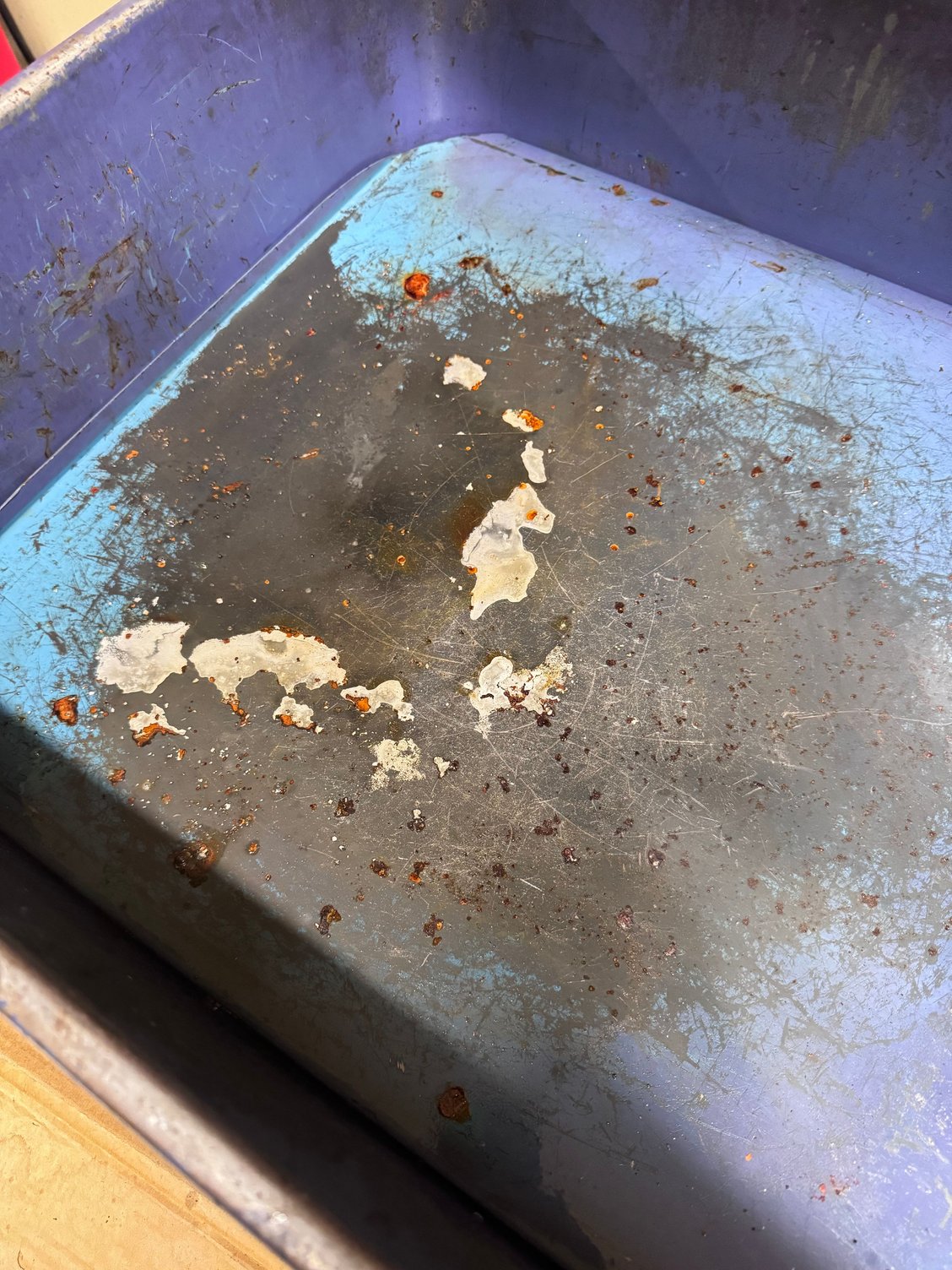 it’s an old metal Matco (I think) parts washer. The tray has done worn to the metal bare spots. They never corroded until I started using simple green. Wiped the corrosion off and put the wd40 in there. Headed to get more simple green. Doesn’t work very well on that black film that coats things. Gonna see if I make it stronger if it’ll help
