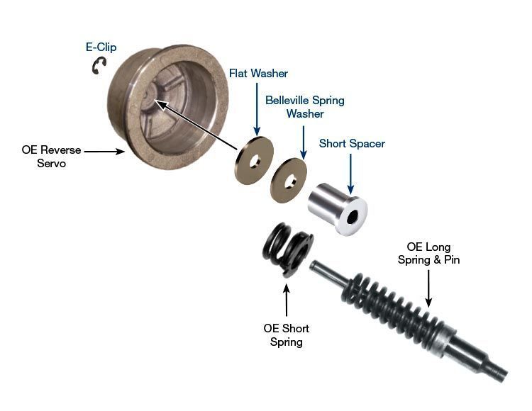 I believe my problem is that I am missing the spacer for the servo pin. This is a picture with the spring on the pin. I believe that c clip land should be just about flush with the piston body?