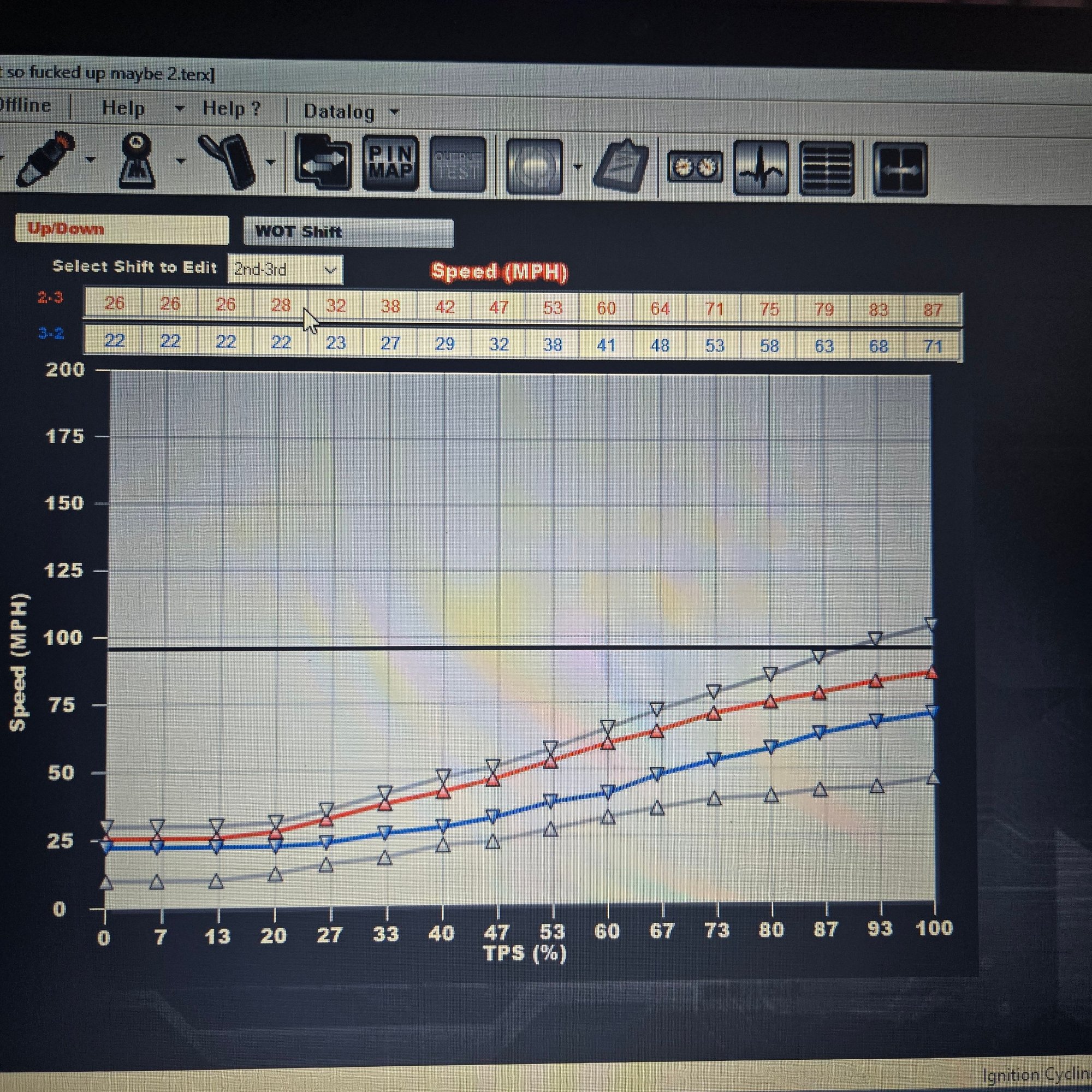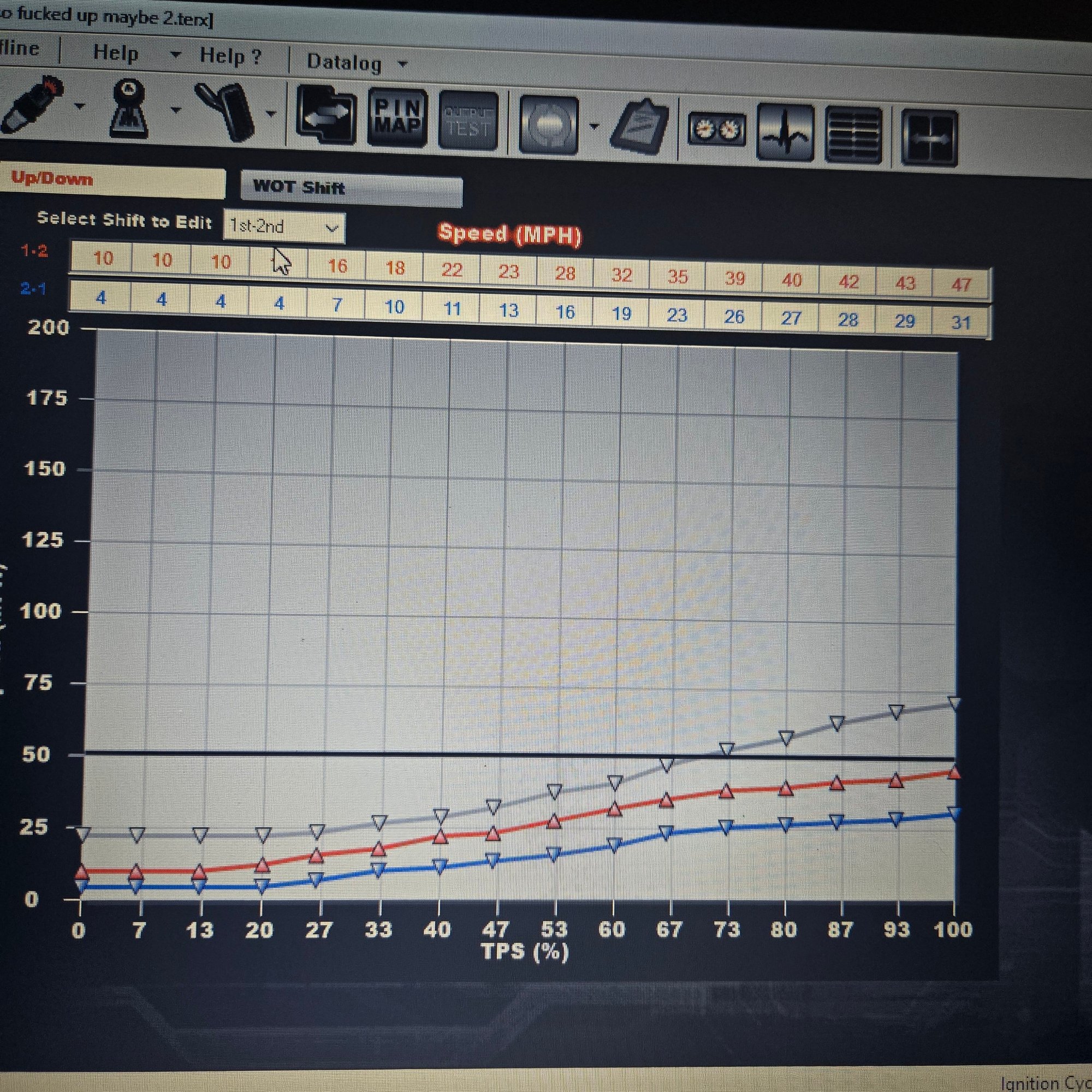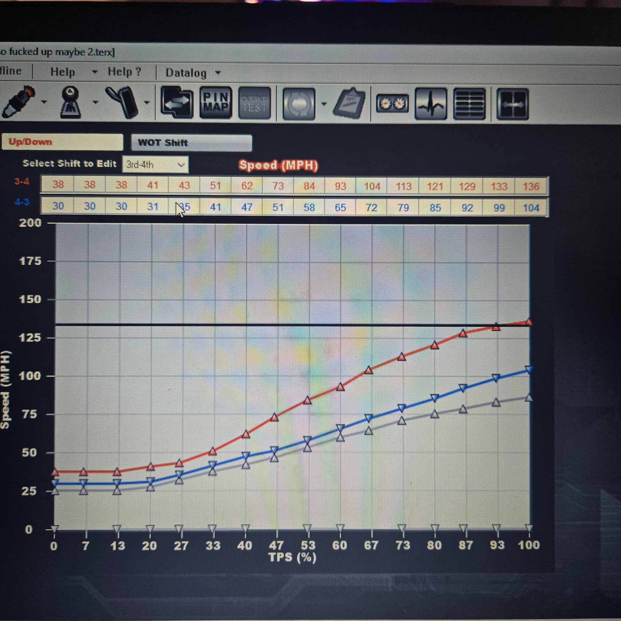 correct trans is selected and I'll get some pics of the tables tonight, but ya I can see the holley asking for shifts, trans just doesn't wanna listen lol