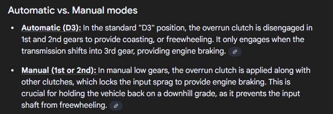 Before i replaced the VB, when it would get warm and get stuck in 1st, if i put it into 1st manually it would lock the TC and use the engine braking etc no coast, same with second - was that part of the issue or is that normal operation in 1st/2nd? I did like it to be honest, being able to use 2nd for braking and getting some snorting and popping was nice - just not sure if that's normal operation or part of the previous issue. With this new VB, 1st and 2nd will coast. Dosnt seem like i could use it for engine braking with a trailer or something, or in the mountains. The amazing performance of the lock up solenoid previously is why i did not replace it - surely it was not having an issue with the last VB.