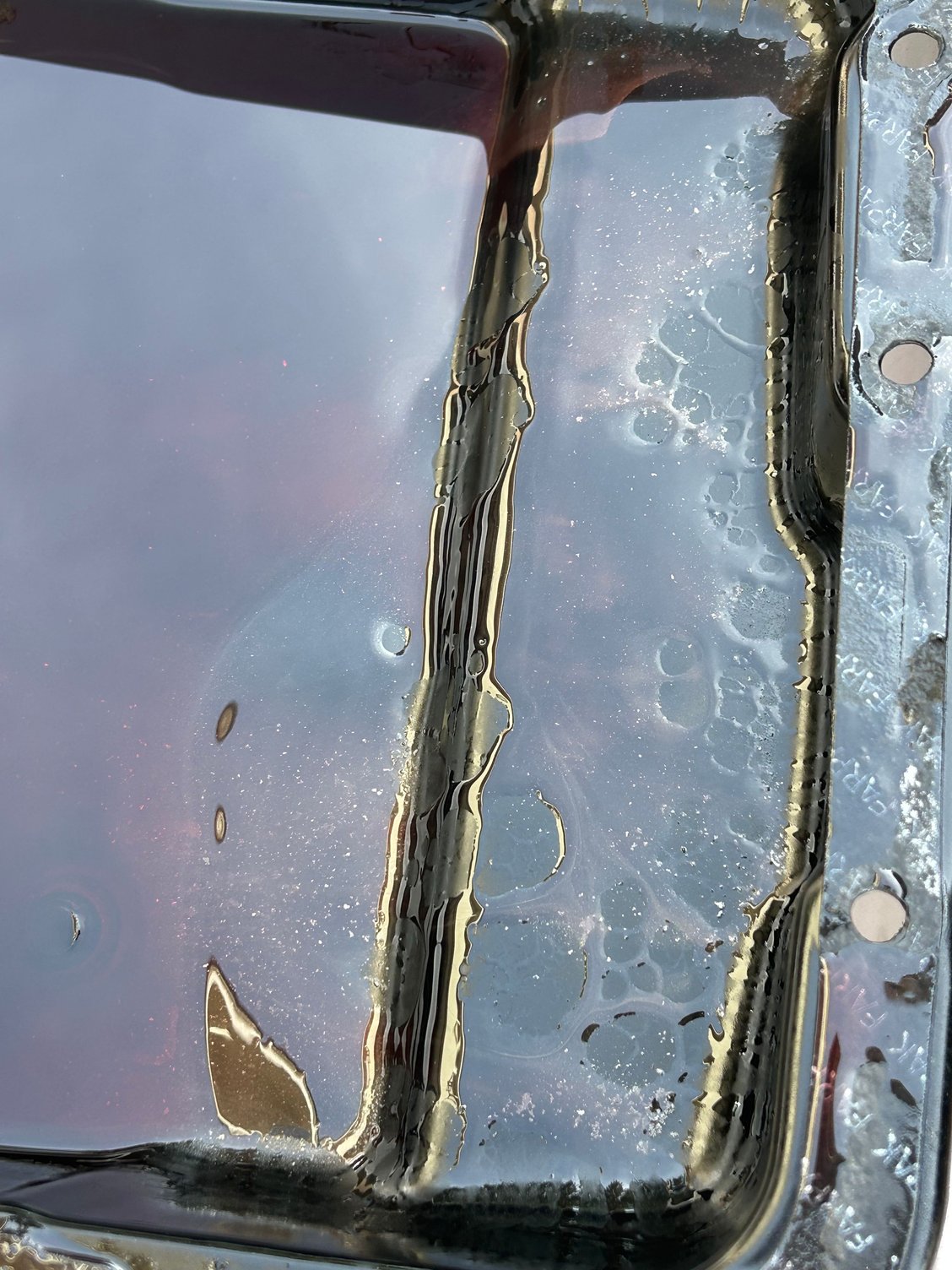 I dropped the pan and replaced the filter today. The pan had a lot of metal in after just 500 miles. The fluid draining out of the pan didn’t look too bad so I was hopeful for a second. But then I shat my pants once I had a look inside the pan.
