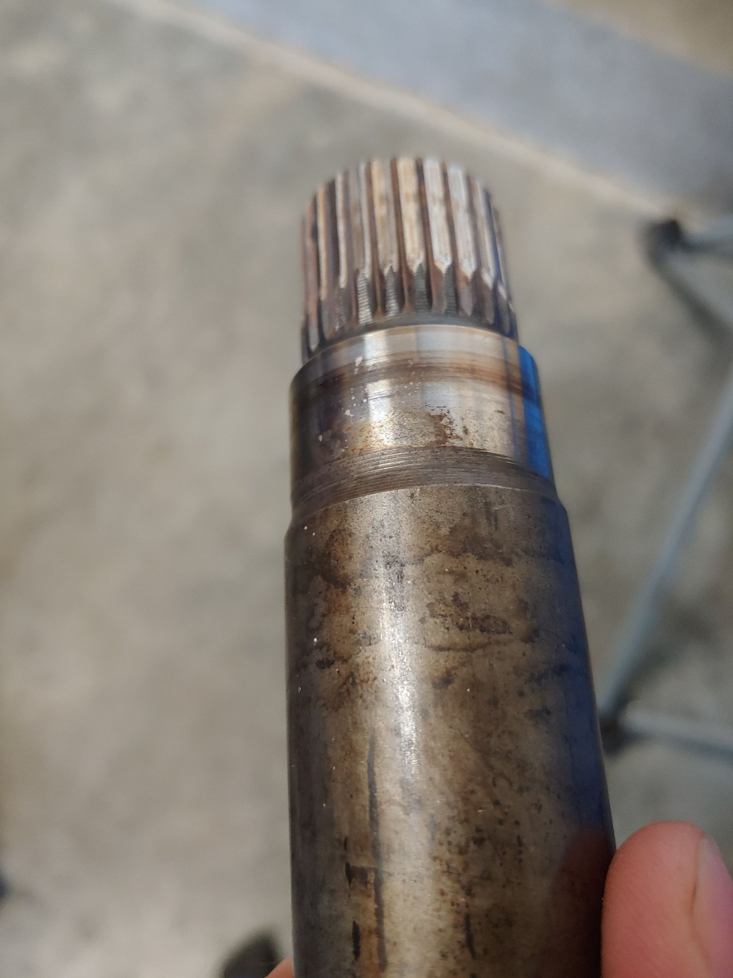 This is a picture of the intermediate axle on my personal tbss i tore down at 85K and the axle splines are mostly stripped.