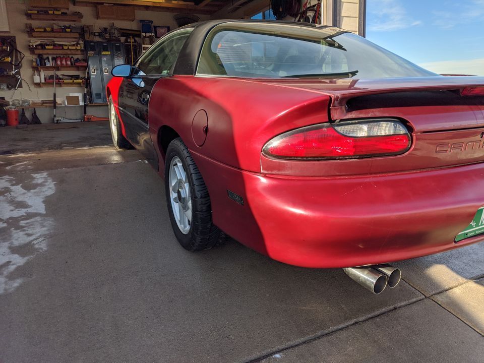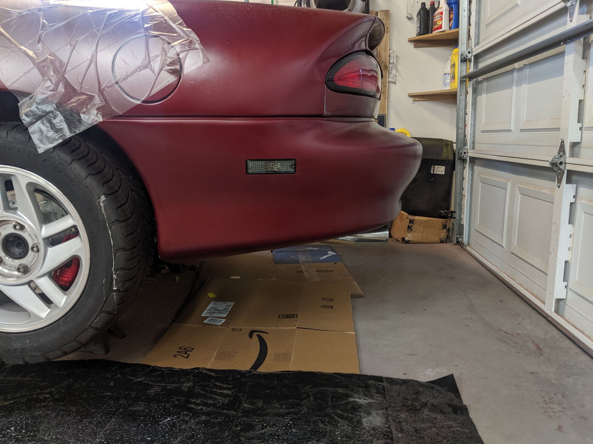 Finally made some real progress over the weekend. I picked up more paint, shot the passenger side and rear bumper, cleared everything and put the rear of the car back together.