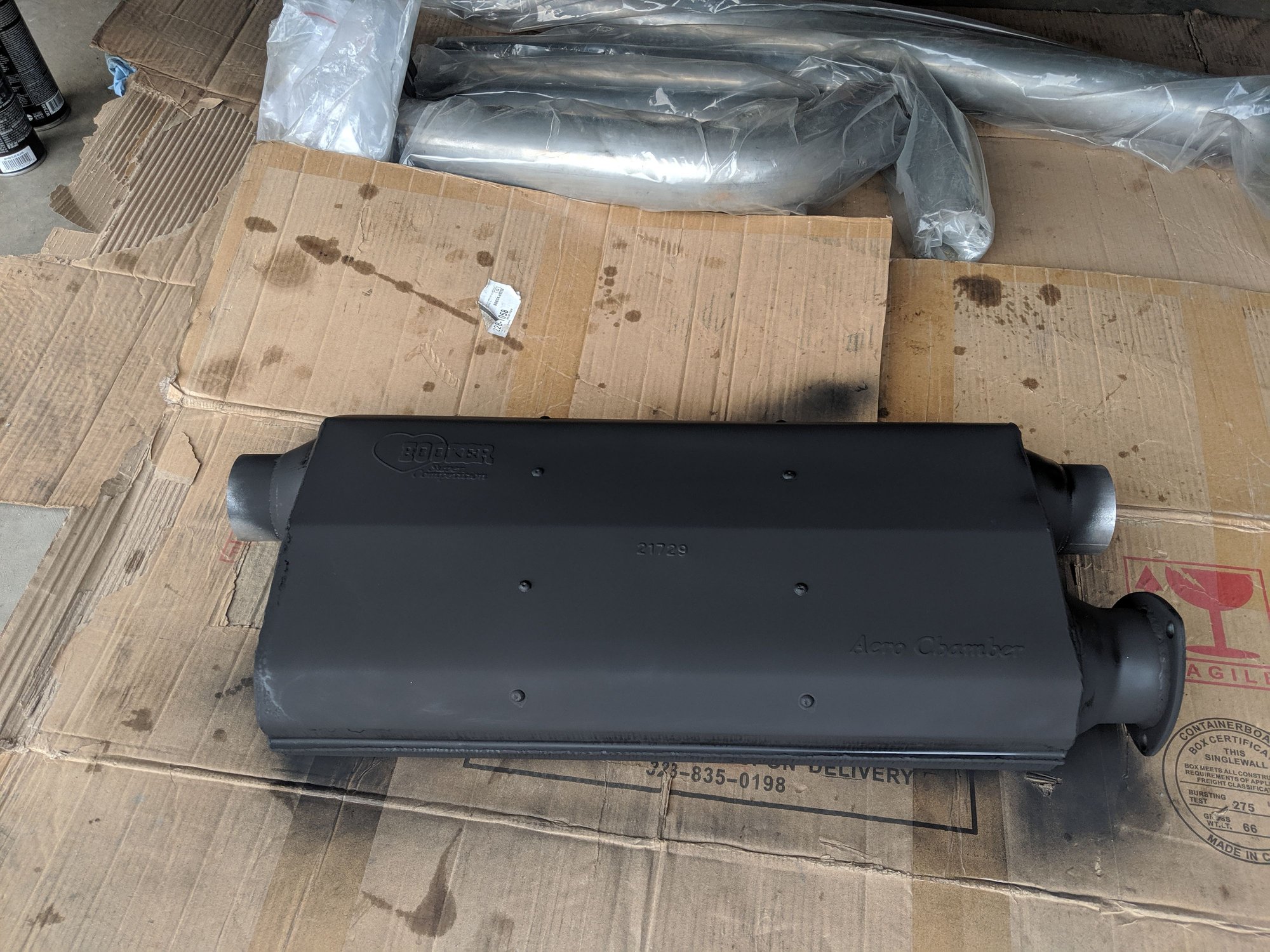 Working on removing the stock exhaust system and prepping the new cat back for installation. I decided to paint the system to help with rust/corrosion since its not SS.