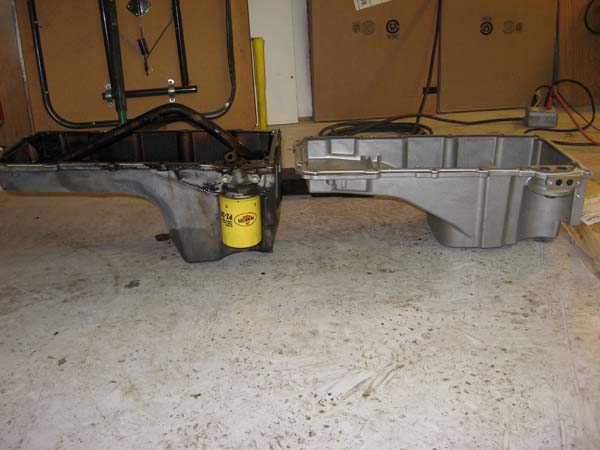 the truck pan very well may work with the modifications I made to the firewall and tunnel. Along with that thought, as high as I need to put the engine to a] keep the pan off the cross member and b] keep the oil pan out of the way for steering clearance, I may put the truck pan back on to see how it fits.