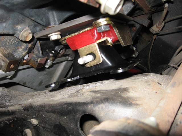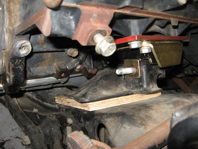 I don't want to run the stock '67 stands catilevered like in the pic. John67 has a pic of 3 different stands in his build thread. If I could get my hands on the 1 3/4" stands [bottom to center of bolt hole] I would be golden with a 1/4" spacer under them and they would be centered on the cross member.