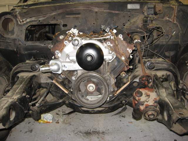 I am a bit perplexed myself as to why you had so much trouble. I used the F-body pan on mine as I had told you before and it was a very tight fit sliding the motor in but once the oil pan is past the crossmember I had sufficient room. Maybe the fact that I am using a 700r4 makes a bigger difference that I thought?