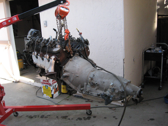 I broke a universal and a few knuckles trying to get the tranny split while in the truck. I decided to pull it in one unit and finally got it today. I am hoping it might be a little easier to split out of the truck.