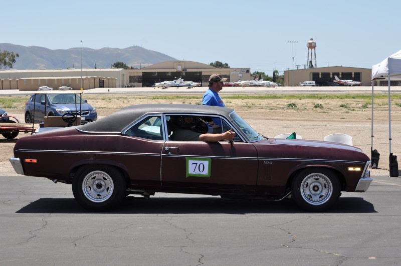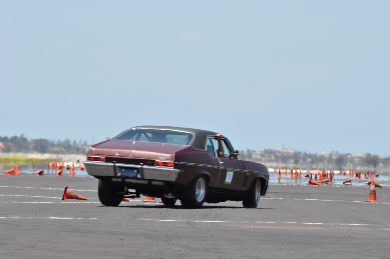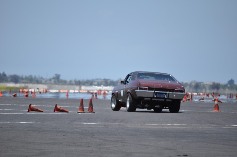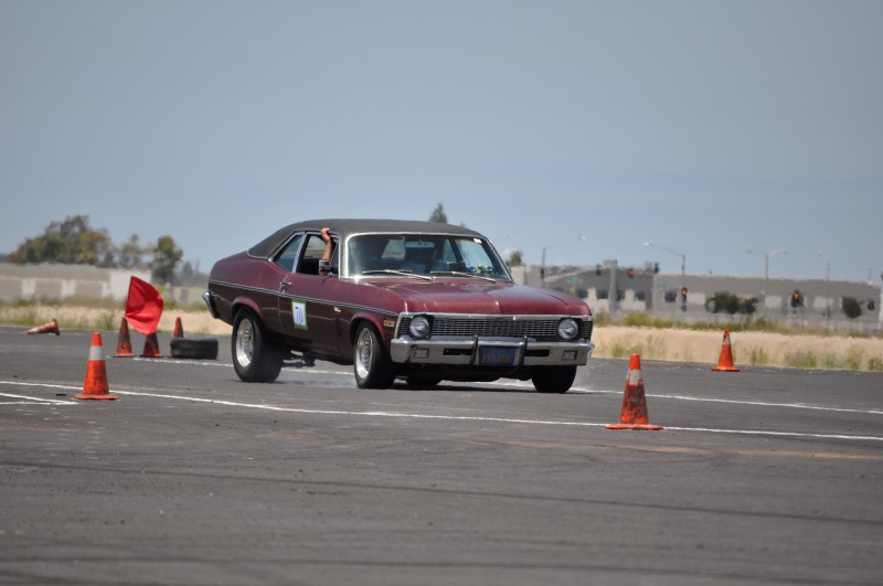 This Saturday I took the Nova autocross for the first time since the swap and only my second time doing this at all. What a riot! Since my last time doing this in 2009, I have the new engine, stiffer front springs and sway bar, more static caster and camber, a modified camber curve via the Guldstrand mod, and better shocks up front. Unfortunately I haven't done anything to the rear yet, so the car is horribly unbalanced. And my tires (10+years aged hard compound big & skinnies) were not helping either. That did not stop me from having SO MUCH FUN piloting this thing around the course! The bug has bit hard...