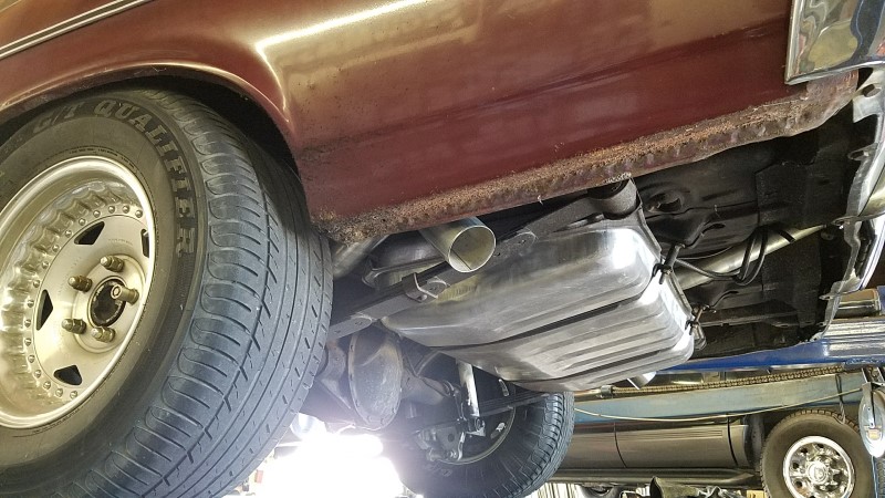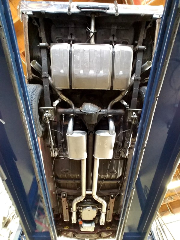 It was great having the car up on a lift where I could walk around underneath and see everything. I swore when I finished the exhaust originally I would never lay under a car and tack exhaust together again. My back still hurts thinking about it!