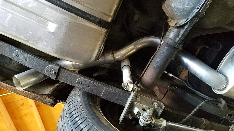 I decided to have the tailpipes exit unobtrusively below the quarter panels just behind the tires. This is about where they exited from the factory. I much prefer the sound of turndowns because you can hear the exhaust note from all around the car and not just the back, but getting the exhaust away from the cabin is better for my health and quiets things further.