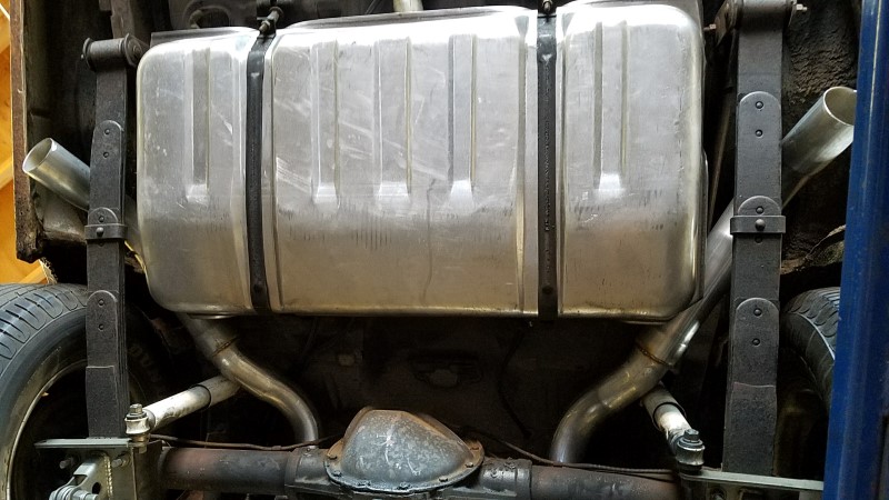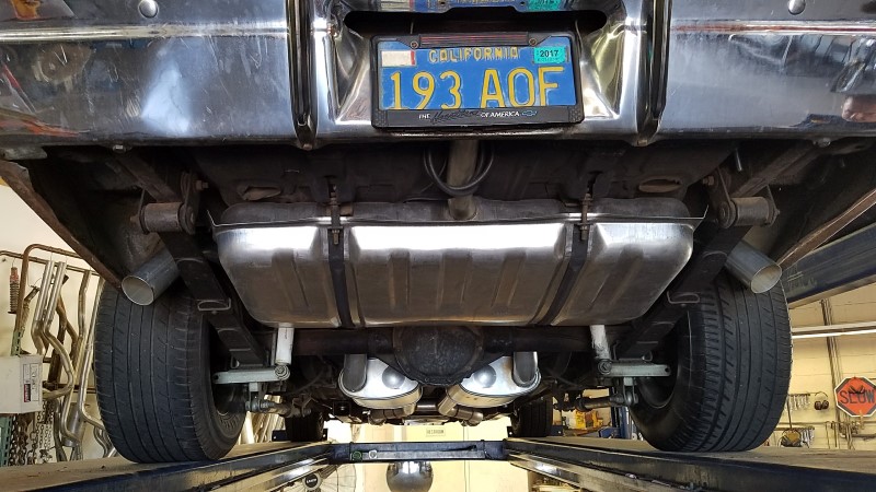 The fuel pump is a Tanks Inc PA-4 tray installed into the factory tank with a Walbro 255. The loudness depends a lot on the fuel level - you can barely hear it when the tank is full. In the night time video posted previously with the Super Turbo mufflers, the fuel gauge was reading 3/4 tank. In the daytime video in this post with Ultraflo VT mufflers the tank was nearly full.