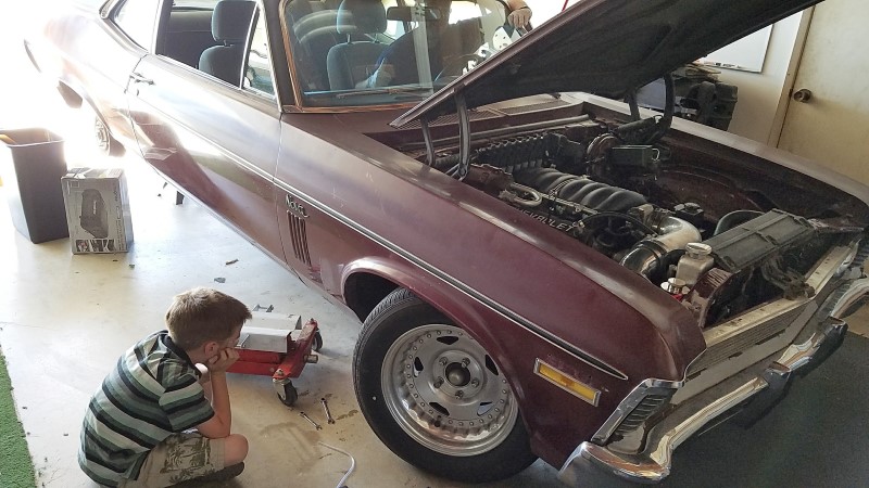 Fantastic to see the black Cherry Nova running, and what a great looking family! Lock those keys up, that boy is going to be stealing that car first chance he gets. Now that you have good knowledge of the Th 400 when it's time to upgrade, I vote for the T56. I like my 4L80e and it's very good, fast, and the right tool for my car, but it is very boring. Don't do a TKO600 with it's crappy slow shift. Great work, and btw, you might be doing your own tuning soon.
