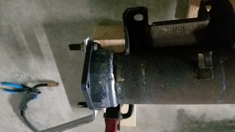 In retrospect I think I would have had better results if I preheated the housing, but even so I think the starts and stops and time to re-position the housing between welds were the main contributing factors to the result. So I decided to enlist my kids to help me make a rotisserie. Here's what we came up with: