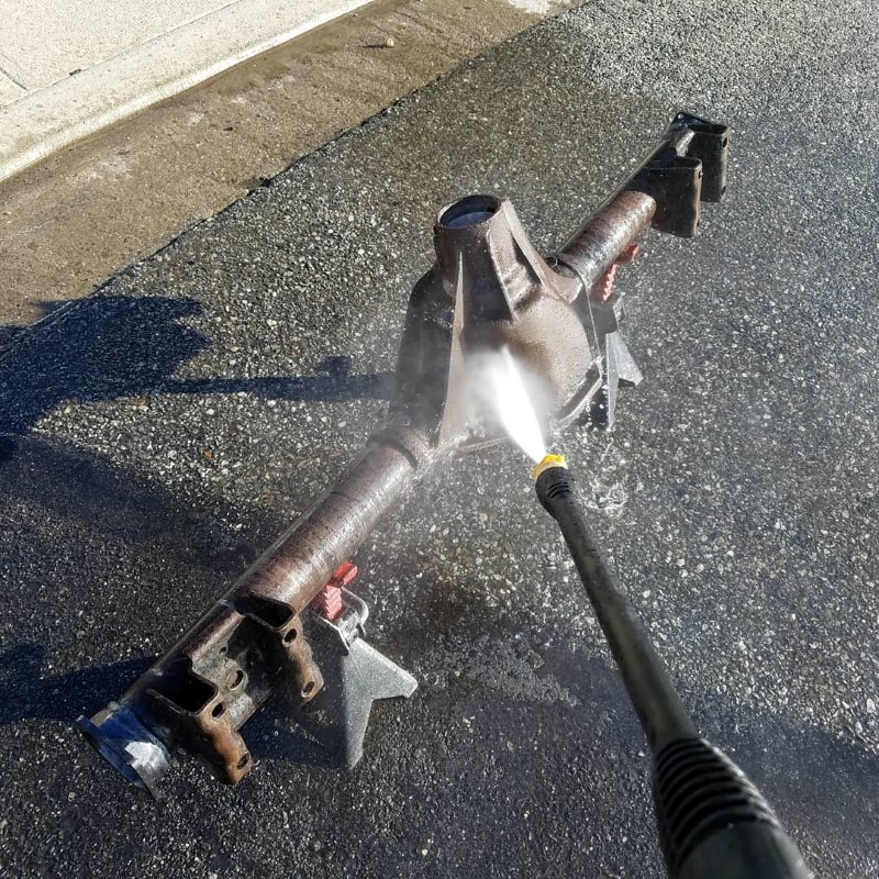 That was it for fabrication, so it was finally time to strip it back down for clean and paint. I got an electric pressure washer a couple months go. After a series of soaking in degreaser and spraying inside and out with the pressure washer, it was ready for paint.