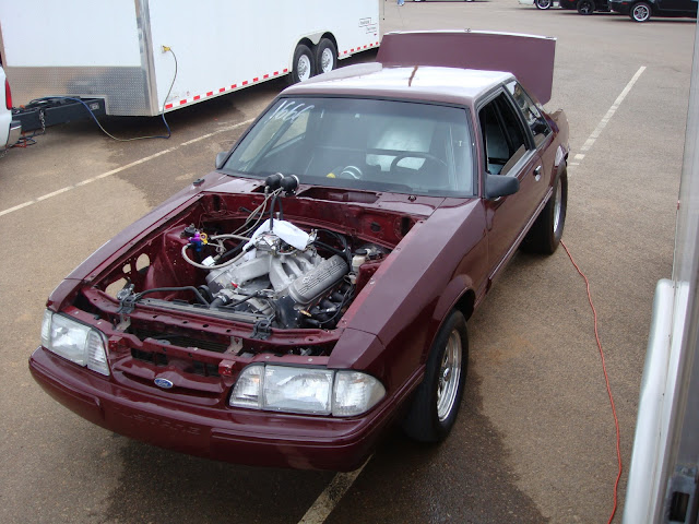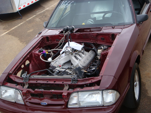 Car looked good. I saw the first two passes. Wish I could have seen the third, a 6.6 with lifting and hitting the limiter is damn fast... I cant wait to see the numbers with a clean pass. From what I hear the tech guys big thing is neutral safety switches that and your battery kill shuting off the motor. What holes in the fire wall were they talking about?