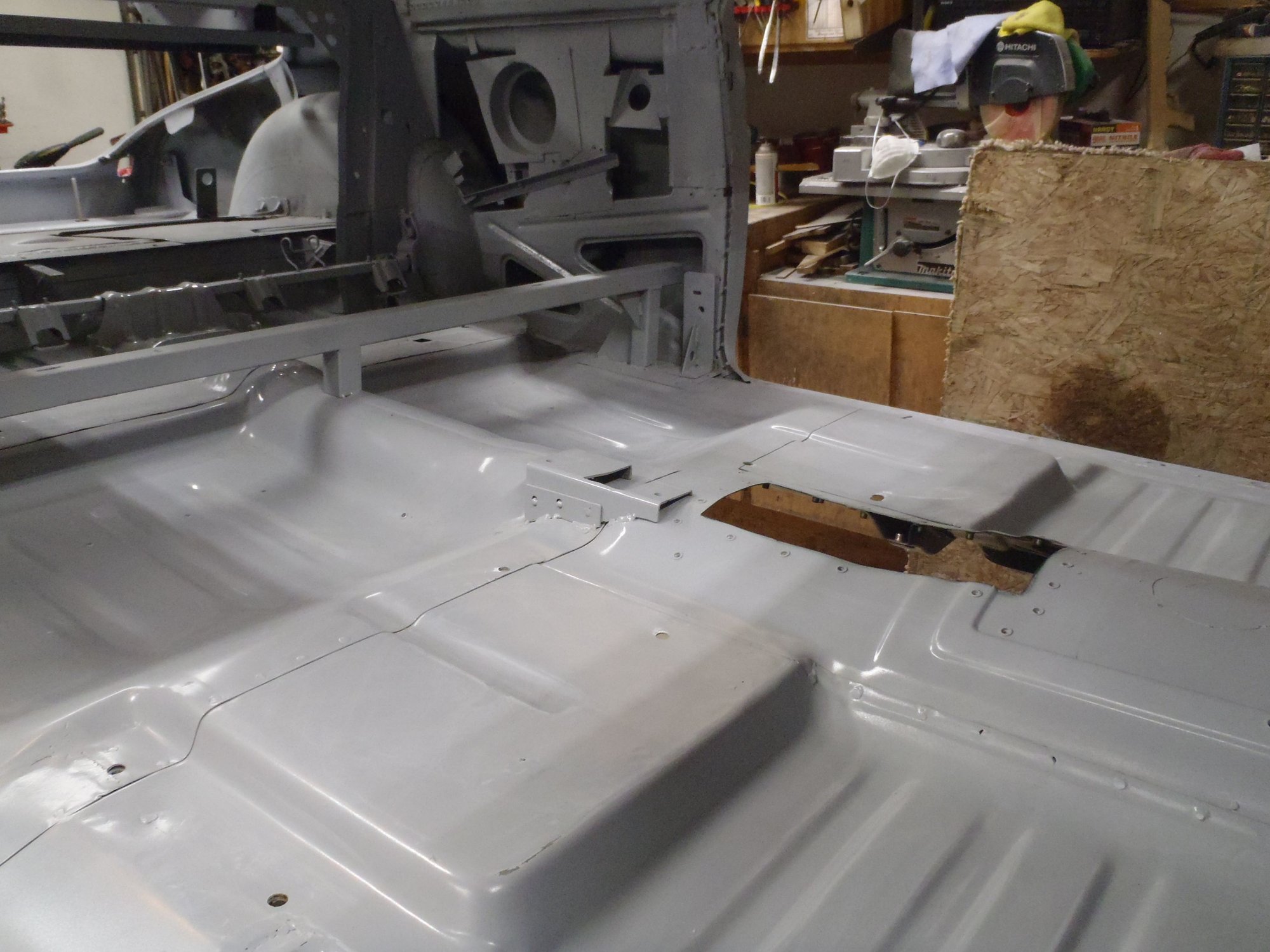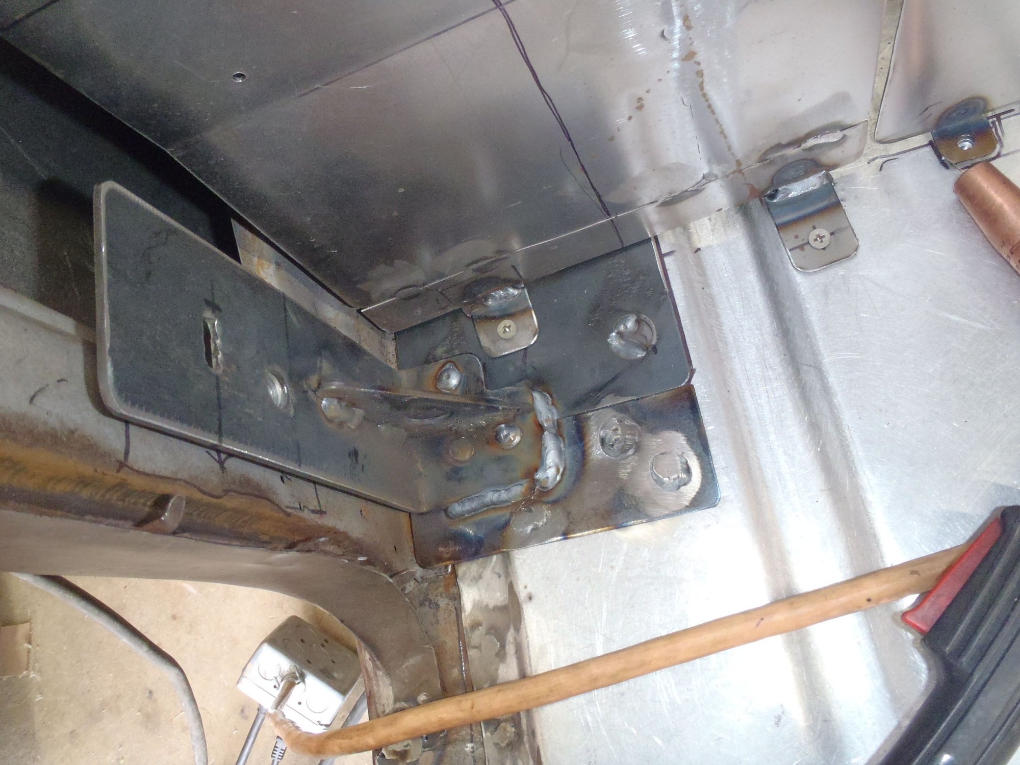 First off allthe sheet metal was EMS-- nice and thick metal--- made in the USA-- on the large size so you have room to cut and fit up. The seat belts came from a chevy Blazer. all the floor boards and A-pillar pieces were fabed to fit in stock locations. I have a ton if pix of this --- for some reason the sight wiot let me up load pix? Seat belt comes up through the slot in the cover. Seat belt mount passenger side