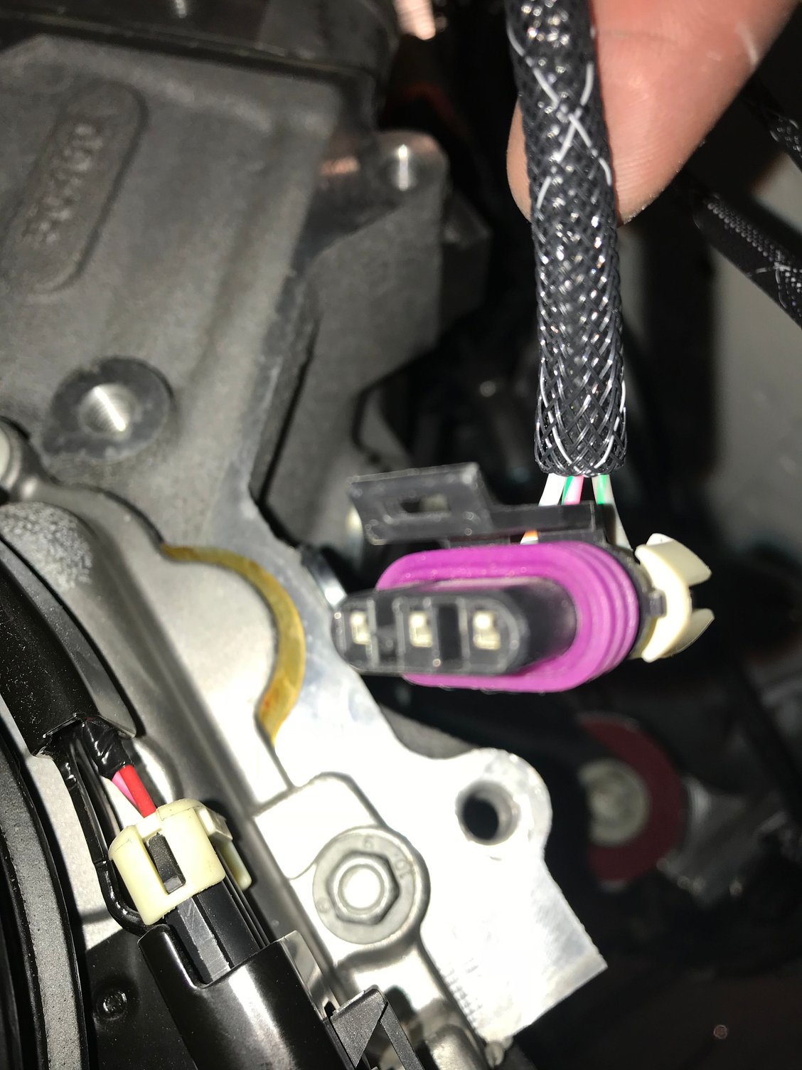 These connectors seem compatible and orientated to each other as far as pins and male female shape. But the connector on the engine seems to have been molded with a block to the clip.