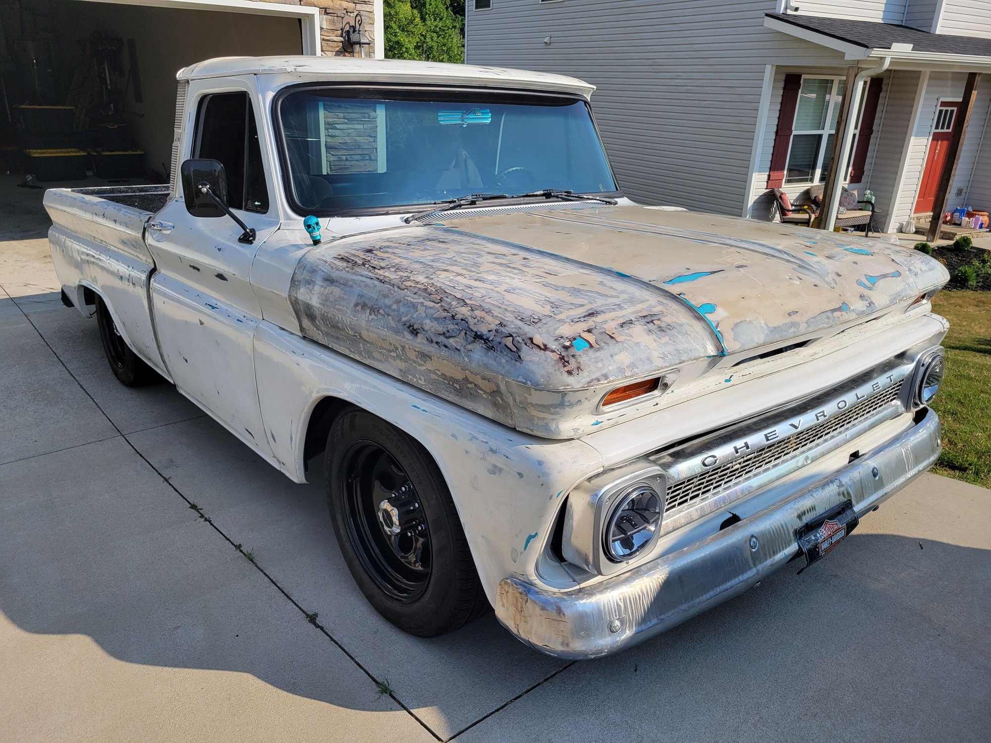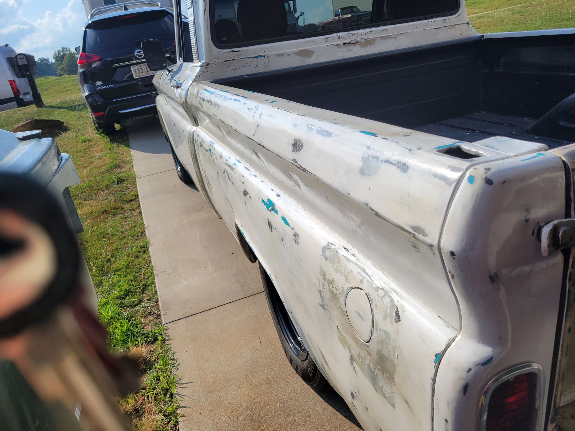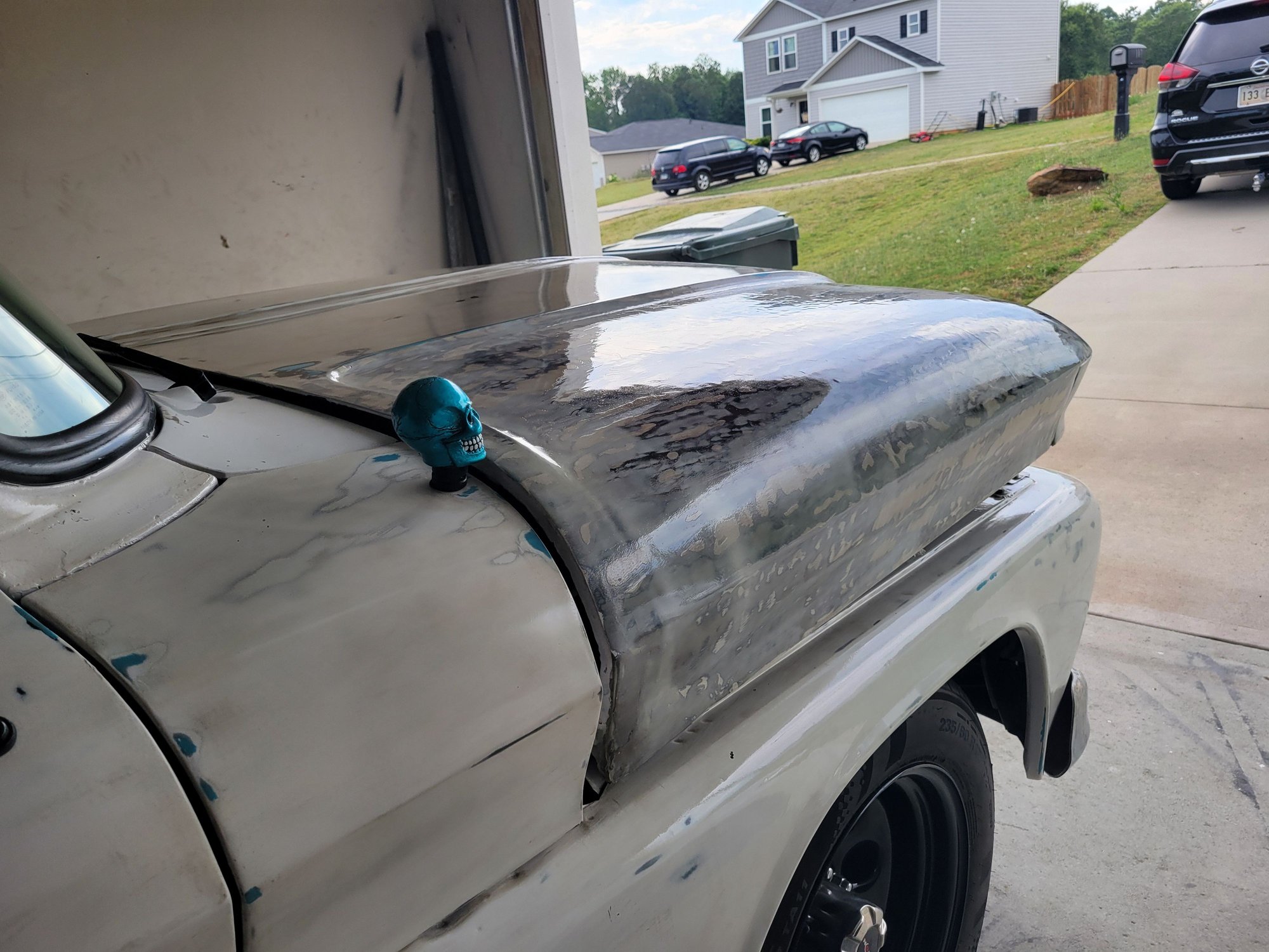 Have been working on my truck for almost a year, so far have gotten almost all the rust holes patched. Still need to replace driver side door bottom, lower outer skin and around the turn signal on the hood along with a dent in the hood.