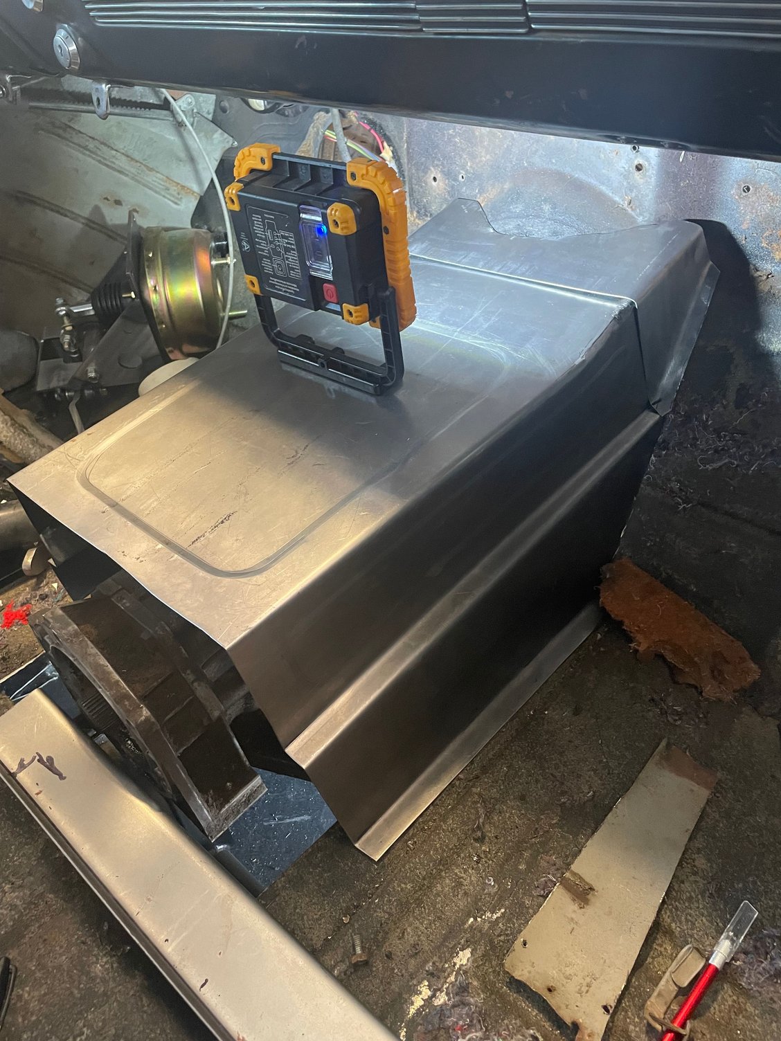 Did finally make a little time to try and get back on track on the Olds. Made a revised version of the trans tunnel and getting that a little closer to being an actual complete unit. Also got the first panel made for the rear firewall behind the seat. Thought the first panel turned out pretty well for a novice fabricator.