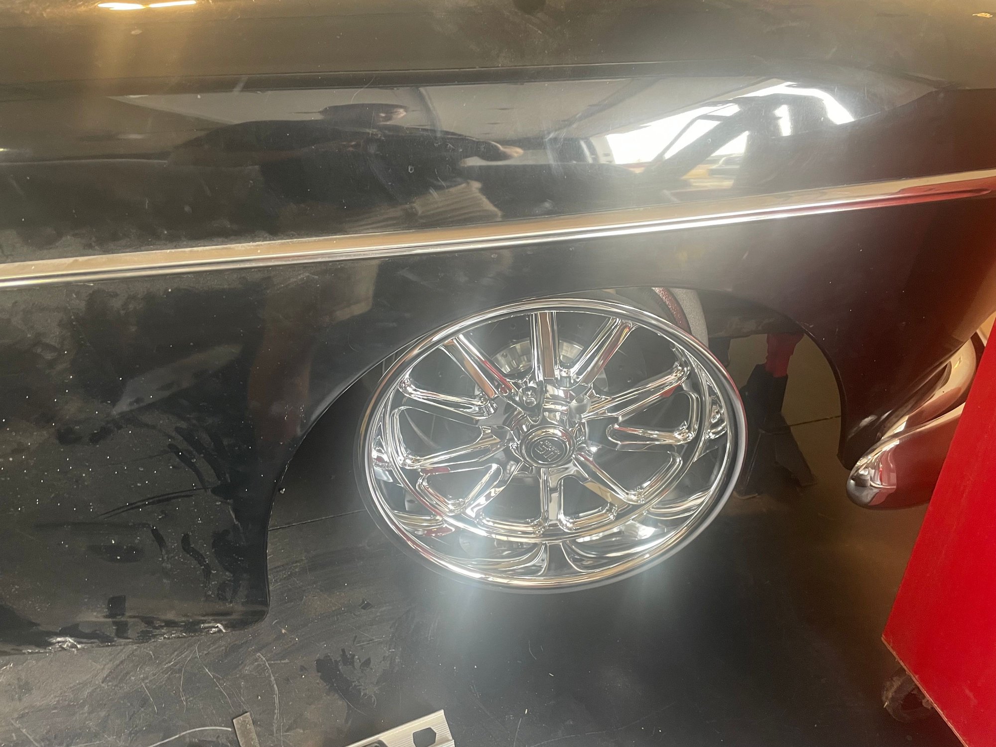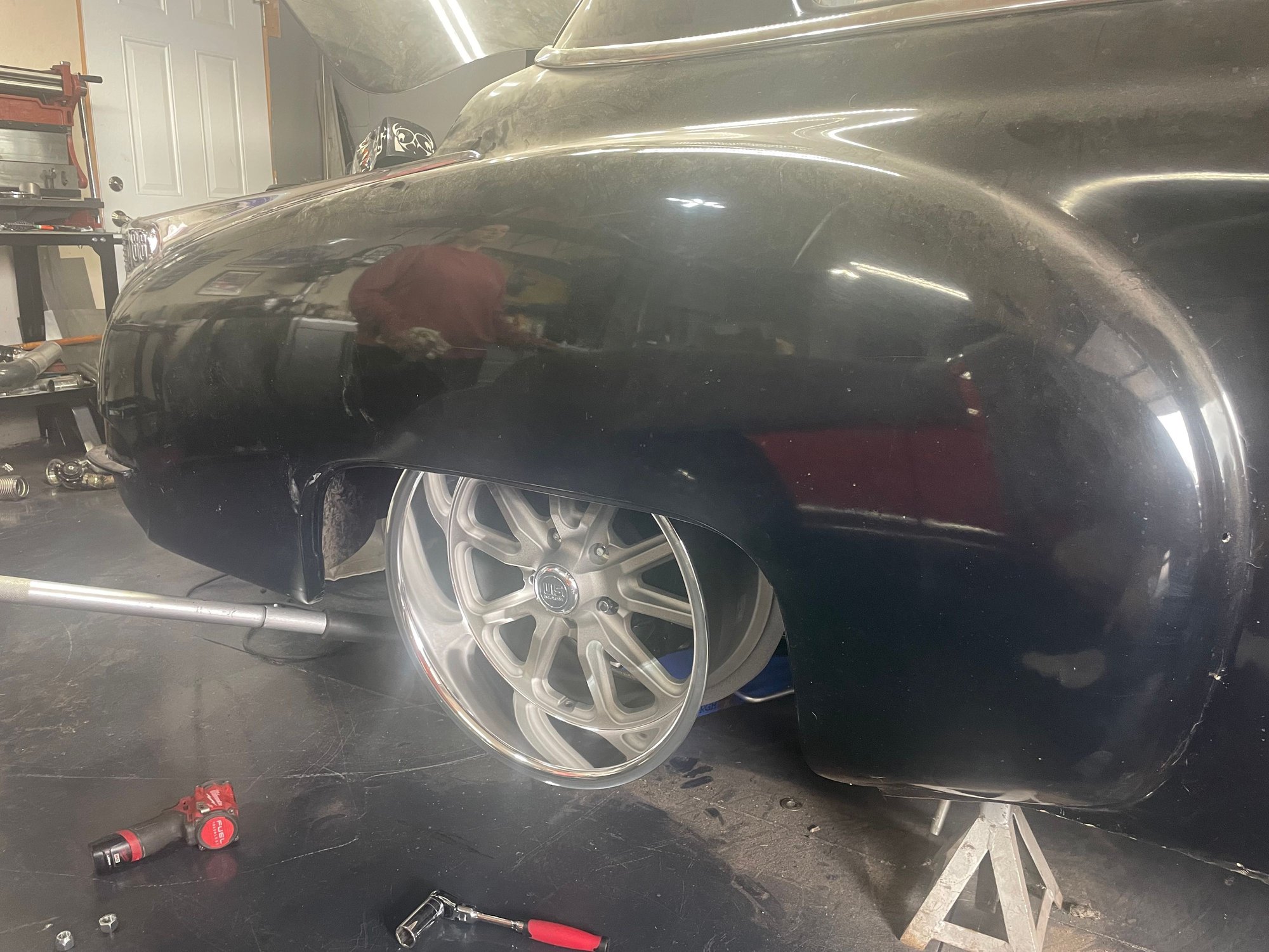 Small update. Haven’t done much on it over the winter but weather is starting to get nicer so getting back out into the garage some. Picked up a couple versions of the wheel I think I’m going to use. They are US Mag Ramblers. Wanted to see what the full polished looked like compared to the textured grey and polished barrel. Also test fitting the rear tire to see what I have to do to make it fit. Think we’ve settled on the full polished wheel. 18x8 front 18x10 rear.