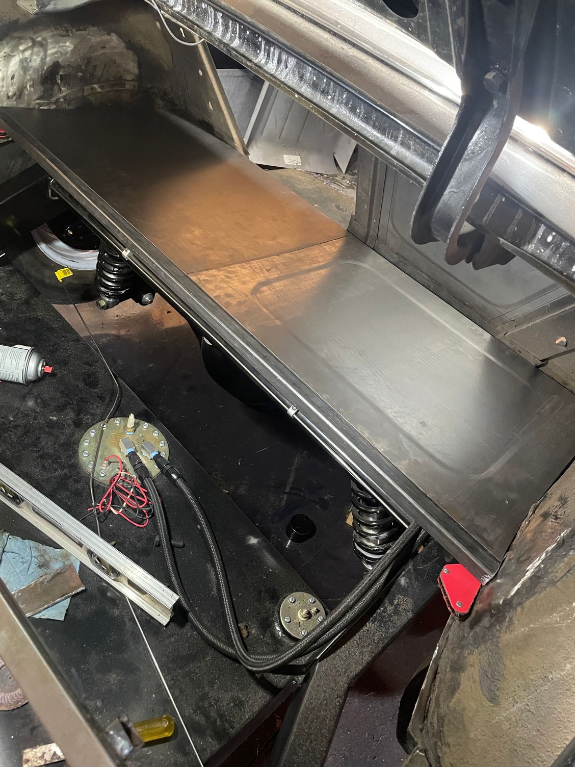 Got started on the front portion of the trunk floor this week just trying to get it all laid out. Haven’t come up with a great plan for the rear section yet as I don’t want to weld to the inside of the quarters or rear panel anywhere as I don’t want to have to mess with paint. Thinking maybe trying to panel bond some flanges to the them that will allow me to attach the floor to them.