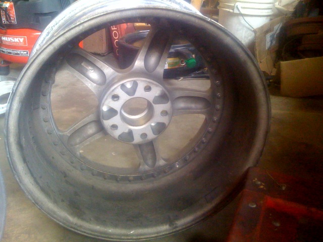 One of the things that I really want to do before RTTH (Run through the Hills) in September is to give the wheels a makeover. I have 3 piece Kinesis wheels that can be taken apart. The great thing about being able to take the wheels apart is that it makes it very easy to clean them or give them a new look. Here is the wheel taken off the car: