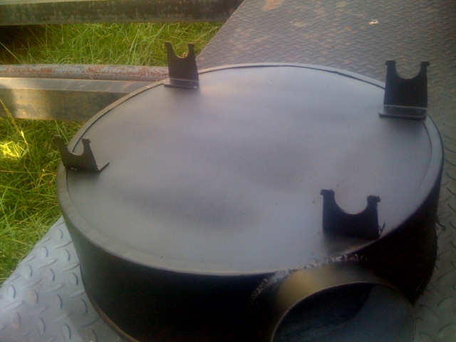 Yesterday I spent some time cleaning up the welds on the air intake tube and on the base. I gave it two coats of rattle can primer, follow by two coats of satin black. Turned out pretty good. I could have spent more time smoothing the welds but I am happy with the way it turned out.