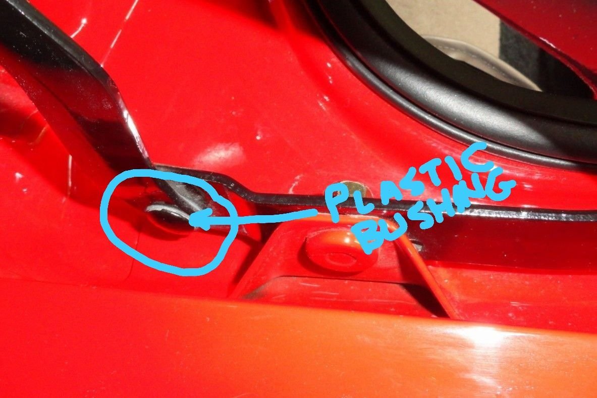 Follow-up: OK, I have no idea if this will assist you but for 20 minutes time I figured I would try to help a fellow long term 'vert owner. Those plastic bushings you mentioned are an unknown to me. I'm just not good at this stuff. Sorry.