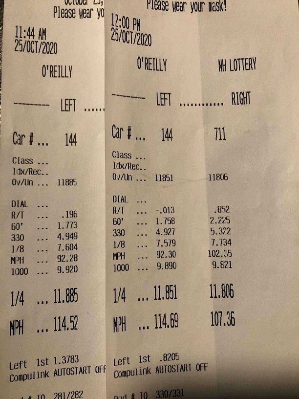 Got down to New England Dragway Sunday for a few passes. It was 79f degrees 39% humidity with a DA of 1188 ft.