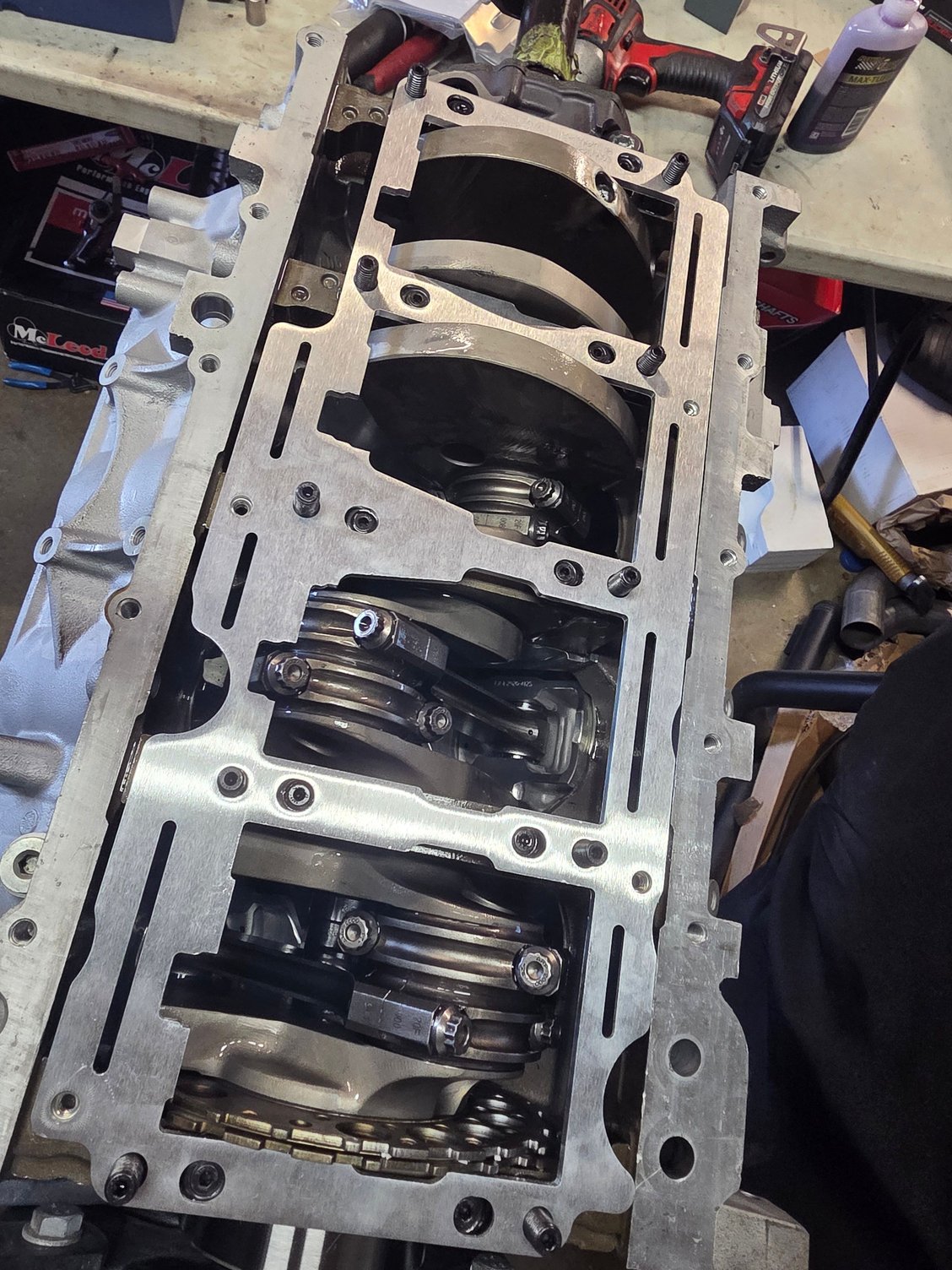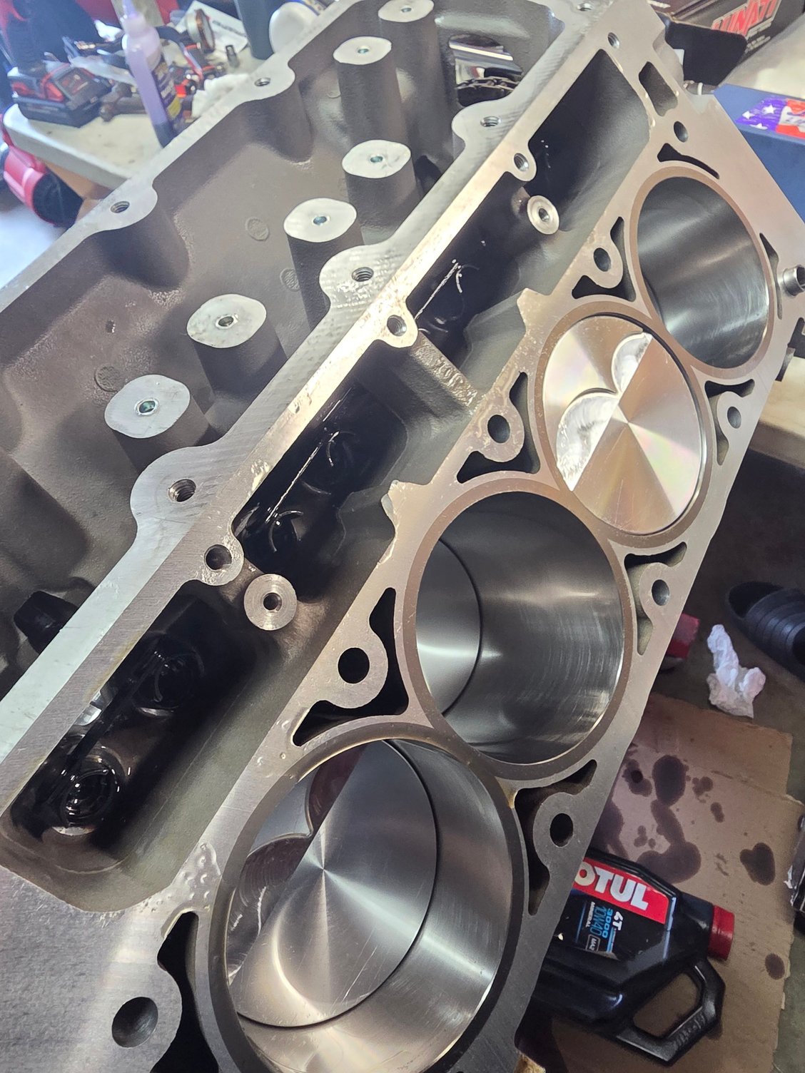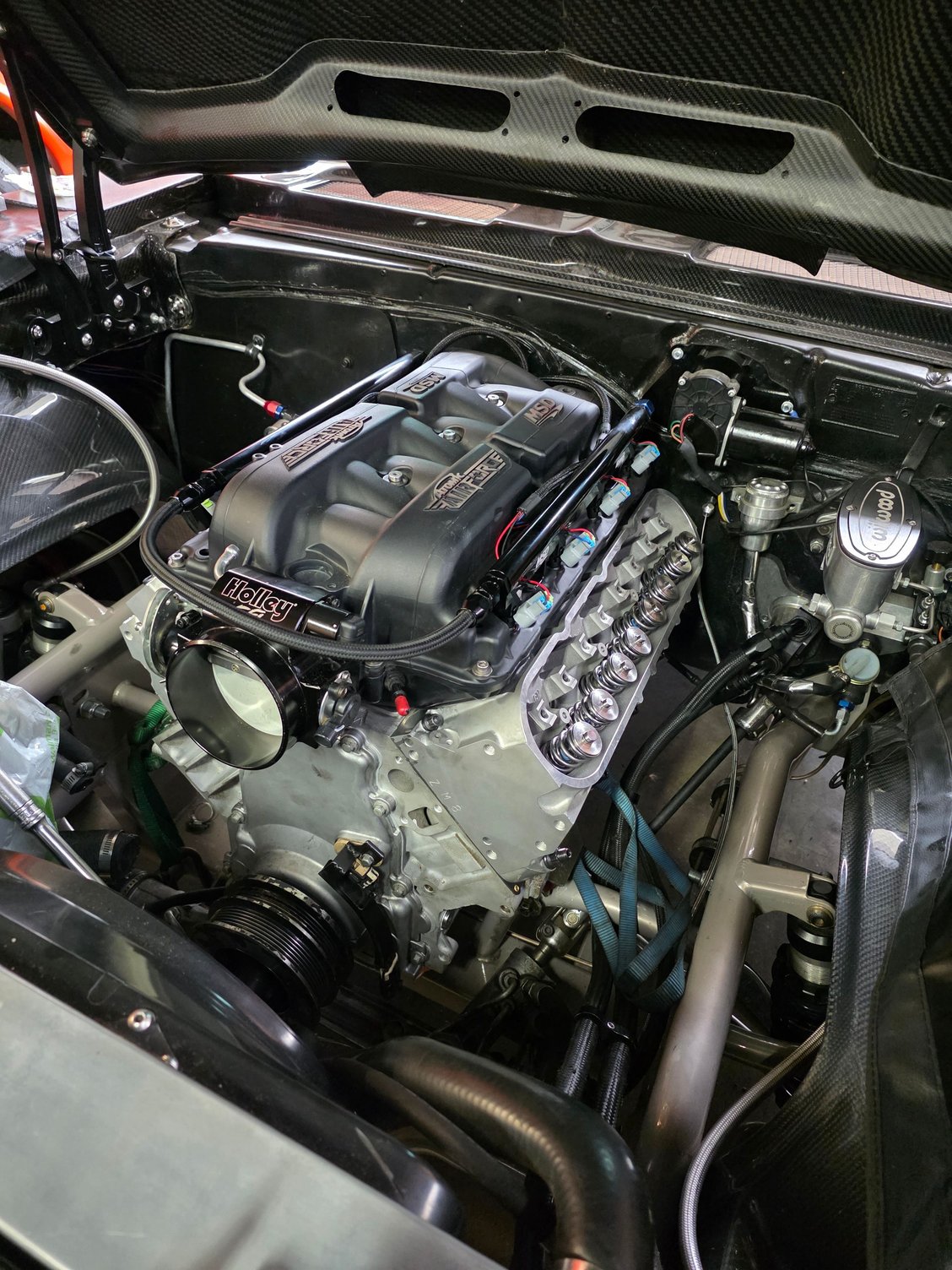 bottom end is Lunati crank and rods with DSS pistons. improved crank scraper and windage, melling high volume high pressure pump, katech c5r chain, trickflow underdrive balancer.