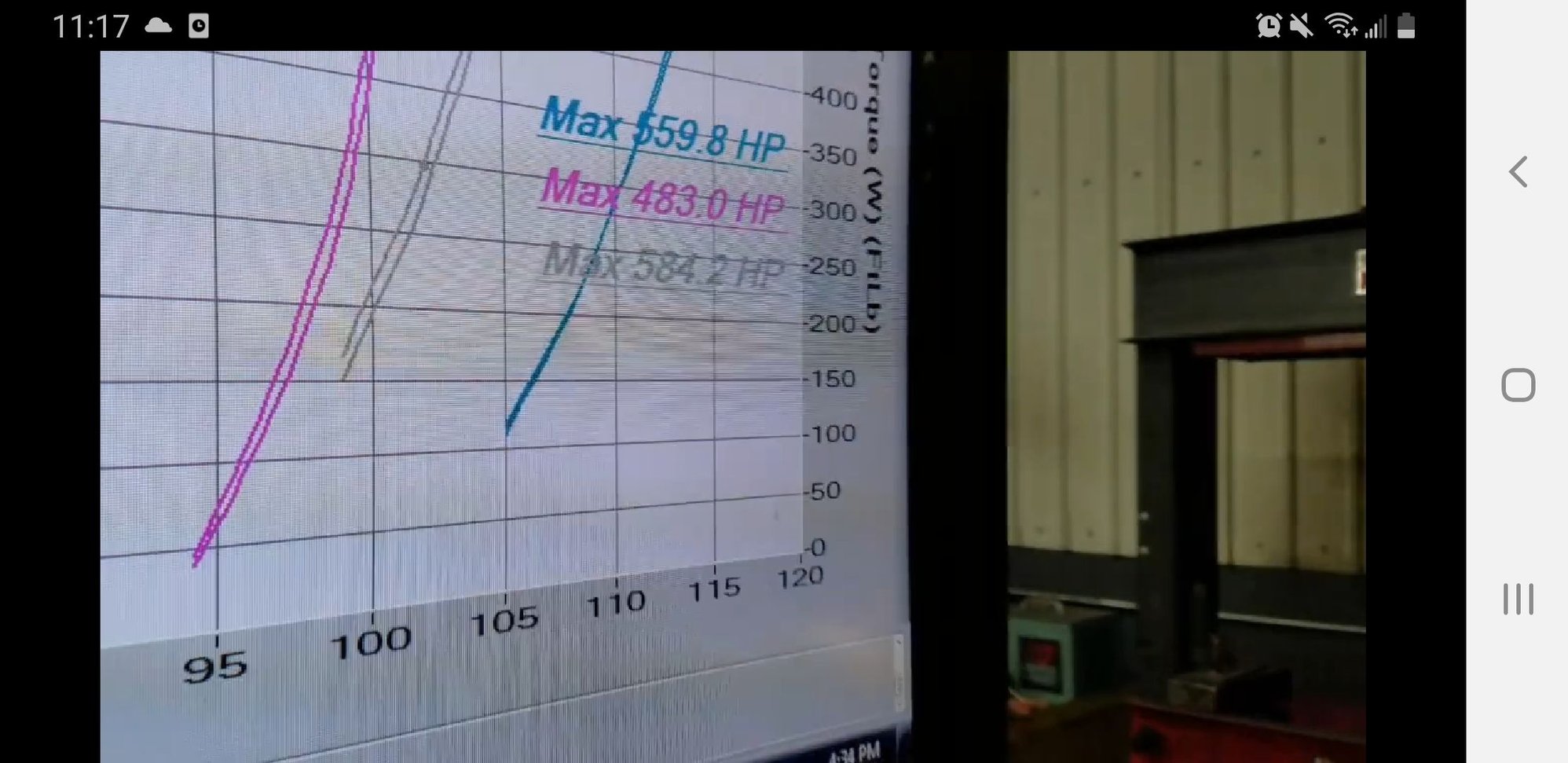 Of course this was a heartbreaker dyno so 584 HP is roughly 650-670 dynojet numbers (12 - 15%). We didnt run out of fuel or anything, I only needed the 3 pulls to get it where he wanted it and he didnt want to go any further.