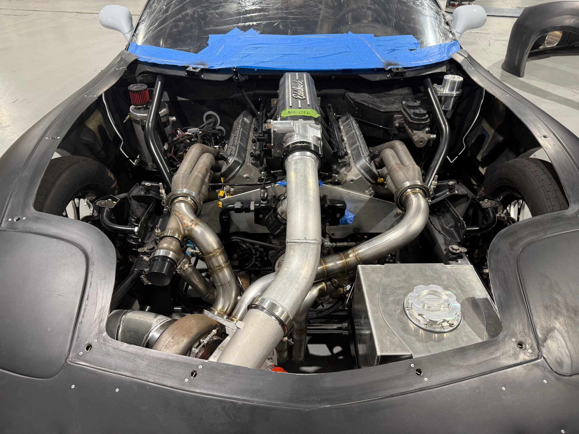 370” engine. Ignite Red fuel. No intercooler. A 40mm JGS gate on each bank with good priority. 94/102 turbo.