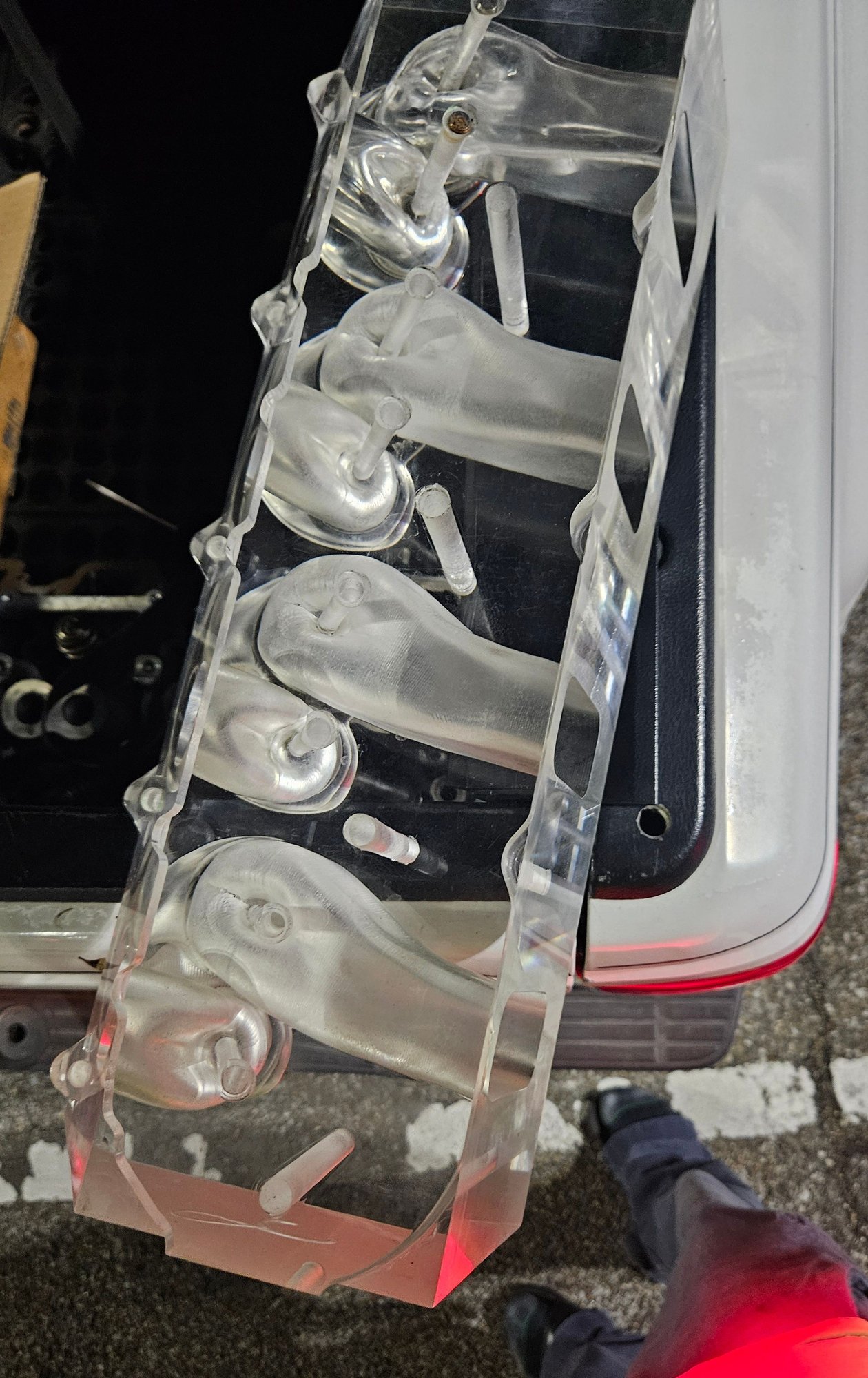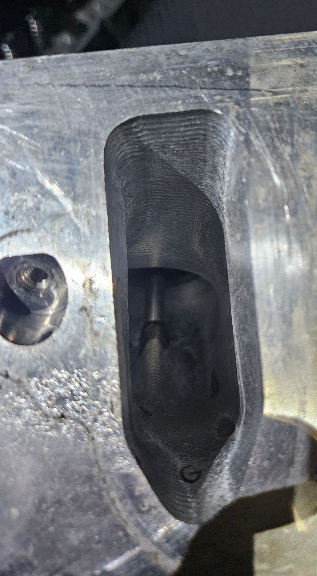 Don't know what else to do with this thing, replaced the damaged head, had them both cut to .040 and the replacement port n polished to match the other. Replaced the piston and rod. Added boost controller and catch can, fired it up and all ran well. Let it run about 30 minutes with a funnel In coolant fill cap all was well. Took it for a spin around the neighborhood, didn't get on the gas as I was nervous too. Arrived home and turned it off and let it cool then went back s few hours and topped off the coolant and gave it a crank with the cap off and once again coolant spraying everywhere just like it did with the blown head gasket, this time I noticed coolant under the valley cover on the front by the water pump. FML, idk what else to do with this thing