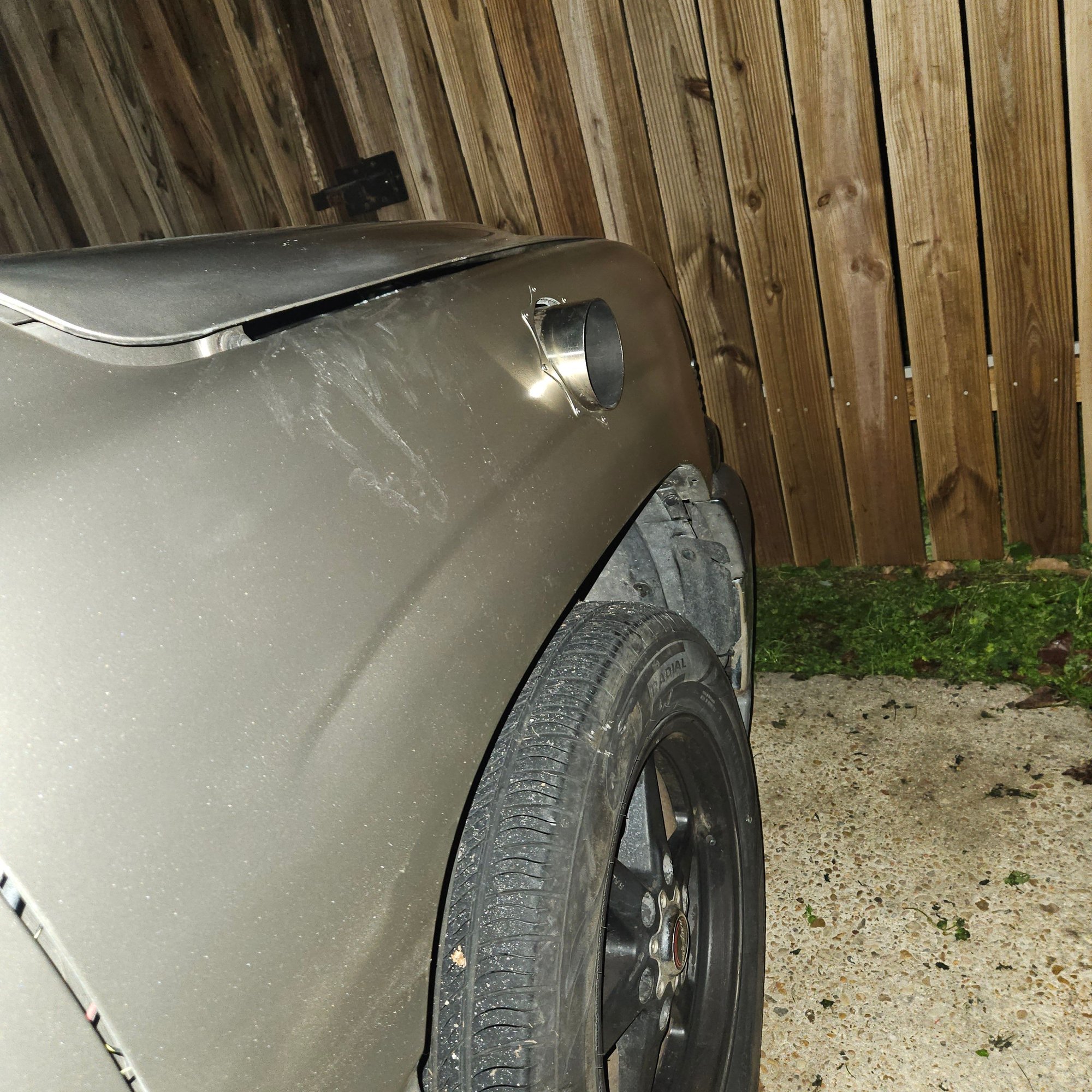 Cross over pipe modified, flex joints cut out and phx fabs dual slip fit joint added in the center of it and cheap cx racing v bands cut out and evil energy v bands welded in place. Ill post pictures when I get it back in the air but its much better. Wayyyyy quieter without the leaks. Intercooler will be next, quick release clamps with be welded on the intercooler. We would of done that Saturday too but ran out if argon and couldnt make any more welds. Also sanded the front end with 320 grit and primed and color matched with spray paint and put black lights and corners in the front.