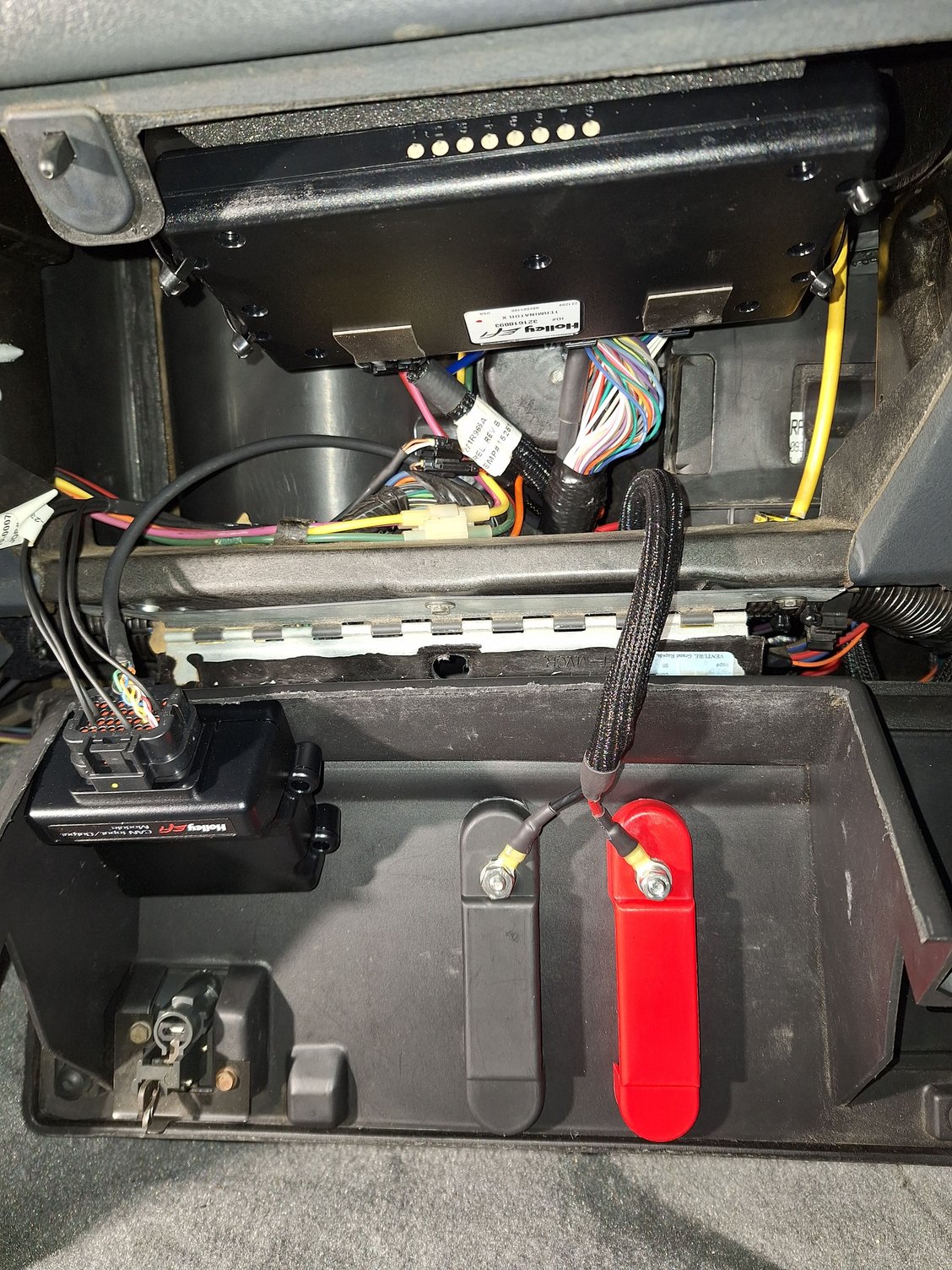 I got a bunch done in the last month. Got my CO2 system plumbed for boost control and for my CO2 powered exhaust cut out, which works great. Have to finish the exhaust on Thursday and I'll make a demonstration video. It's pretty slick. Rewired a few of my I/Os and ran wiring for my driveshaft speed sensor, plus the additional MAC valve for the CO2 control. Mounted a couple bus bars in my glove box to make it easier to add sensors and other items later on, I already have too much attached to my battery. Also figured out that I needed to put more power to my second fuel pump, so I installed a Kenne Bell Boost-A-Pump. It's pretty slick, it only powers on when my 2nd pump comes online. Don't know why some people dislike them, it immediately fixed my high RPM fuel delivery issues. I decided to learn to tune myself, so I bought Joe Simpson's tuning course and it's proven invaluable. Took the car out for it's first trip to the track after some street tuning, ran a best of 11.44@128.72. Ended up bending all my wheel studs due to negligence... I should have retorqued them at the track and didn't, plus I had my shocks set up completely wrong and had bad wheel hop. I had zero idea how the suspension was going to react in this car, and when I thought it would squat on launch, I was 100% wrong - It separates. So I only had 3 clicks on compression, but 6 on rebound. Wheel hop city.