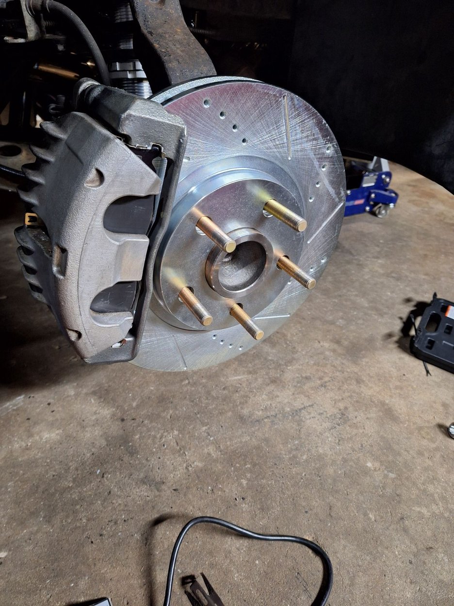 After my trip to the track, my brakes started squealing, so I pulled them apart to inspect. Good thing I did, my front pads were nearly worn out, and 3 out of 4 caliper slide pins were seized in their bores. Seeing as this car is going to be capable of 140+ trap speeds when it's fully tuned, I didn't think I should even try to replace only the pads and get the brakes working. I just ordered a full set of Powerstop brakes and did everything at once. Night and day difference, I hardly have to step on the brakes to stop now. On my subsequent trip to the track this past Saturday, I ran 11.31@131.50 and backed that with an 11.23@131.73, both with 1.8X 60's. My launches really suck, I'm going to buy a Hitmaster clutch tamer this summer and dial that in so I don't have to worry as much about how to modulate this clutch. As it sits, this will run easy 10's with even a .10 drop in 60' times. I dropped .4 in ET simply by improving from a 2.07 to a 1.87 on back to back runs. And the best part is, I'm only running 16PSI and 15 degrees of timing. It has a LOT more in it. I'll post up a video of my 11.31 pass, still spinning the tires but with much less wheelhop.